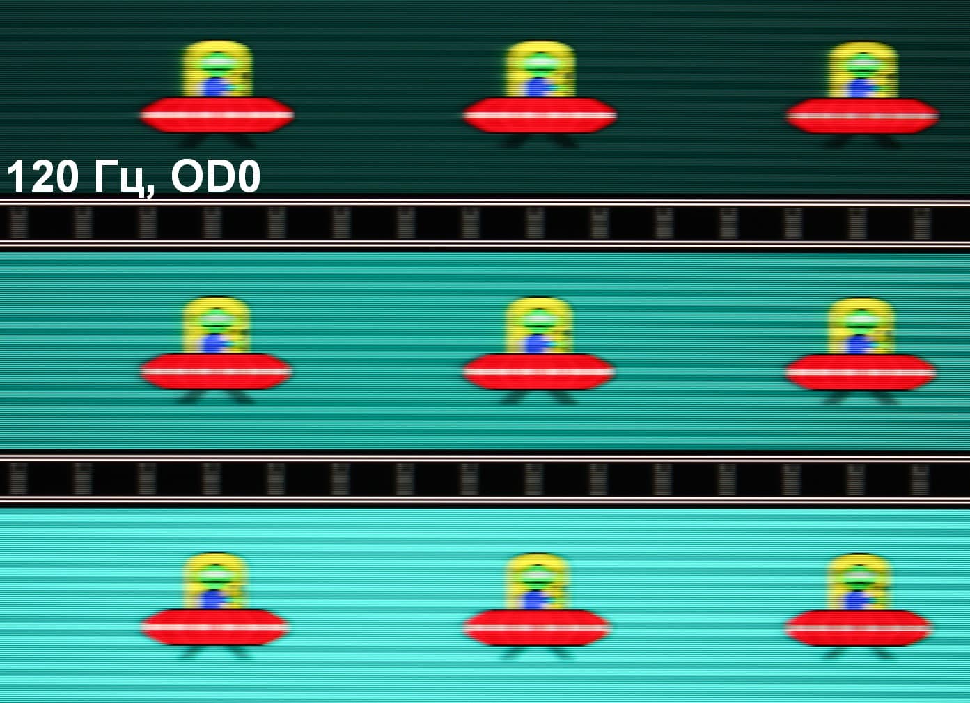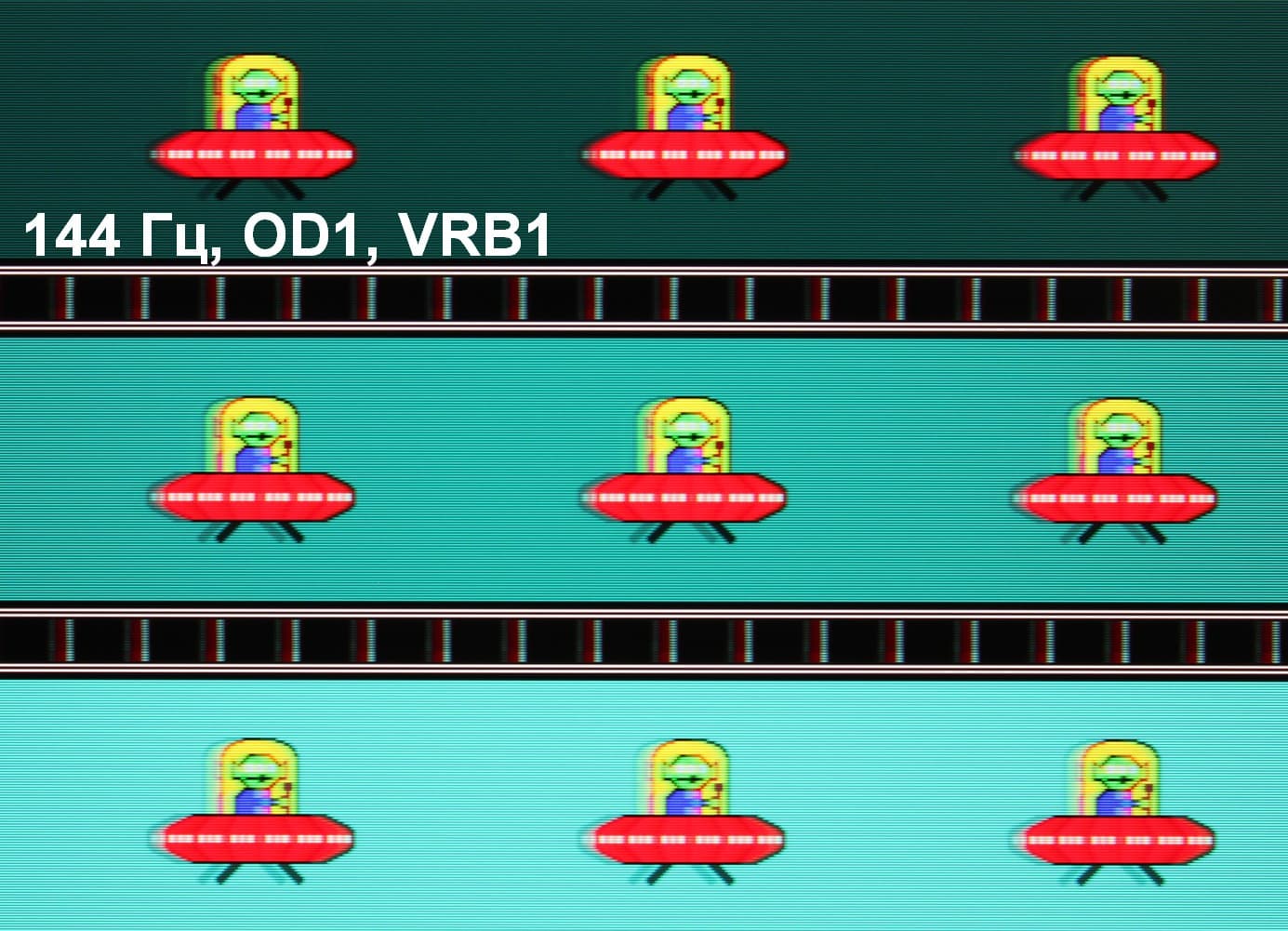 Видно, что при прочих равных условиях четкость изображения повышается по мере роста частоты обновления и степени разгона, но на максимальном разгоне артефакты уже заметные. Включение VRB увеличивает четкость, но объекты в движении троятся, что снижает положительный эффект. Оптимальным с нашей точки зрения является выбор предпоследних ступеней разгона и VRB.