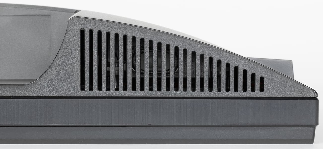 В нише с разъемами, на задней панели и на нижнем торце есть вентиляционные решетки. За решетками на нижнем торце расположены встроенные в монитор крохотные громкоговорители с вытянутыми диффузорами. Громкоговорители установлены в корпусах, закрепленных на упругих стойках.