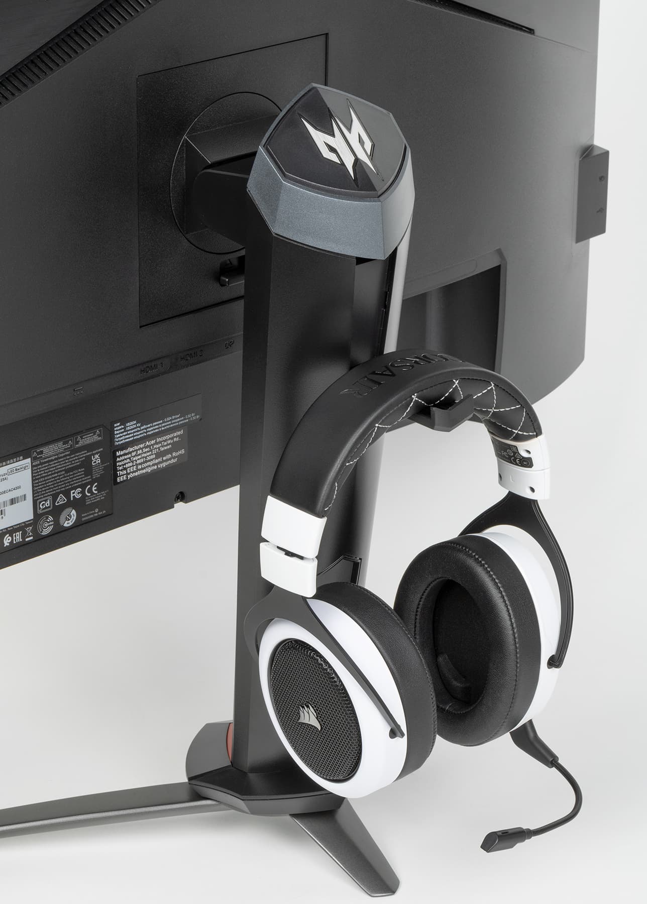 В верхней части стойки подставки есть откидной крюк для наушников.