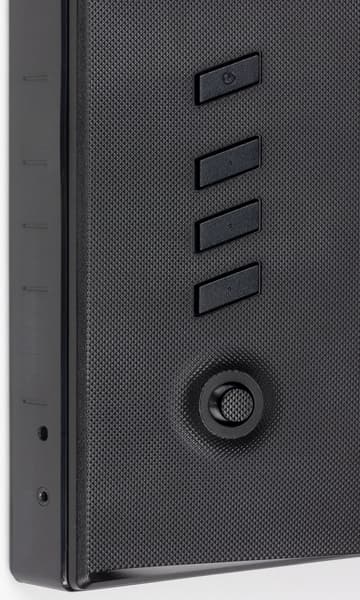 В правой нижней части задней панели очень близко к правому торцу вертикально в ряд расположены четыре механические кнопки управления и 5-позиционный джойстик. На боковой грани окантовки напротив кнопок есть едва различимые рельефные значки.