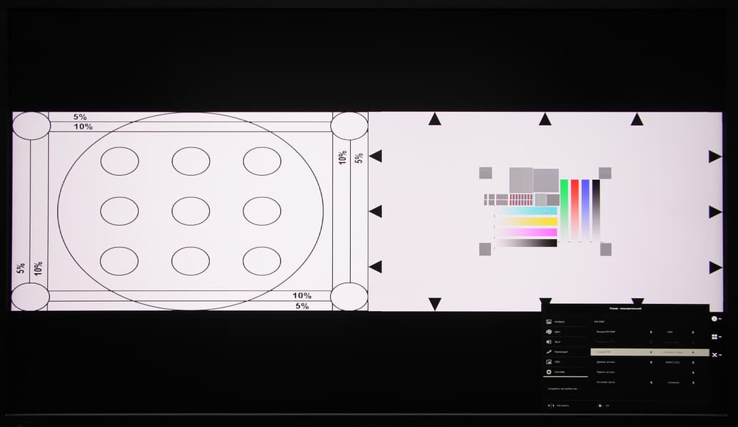 - Измерение равномерности черного и белого полей, яркости и энергопотребления