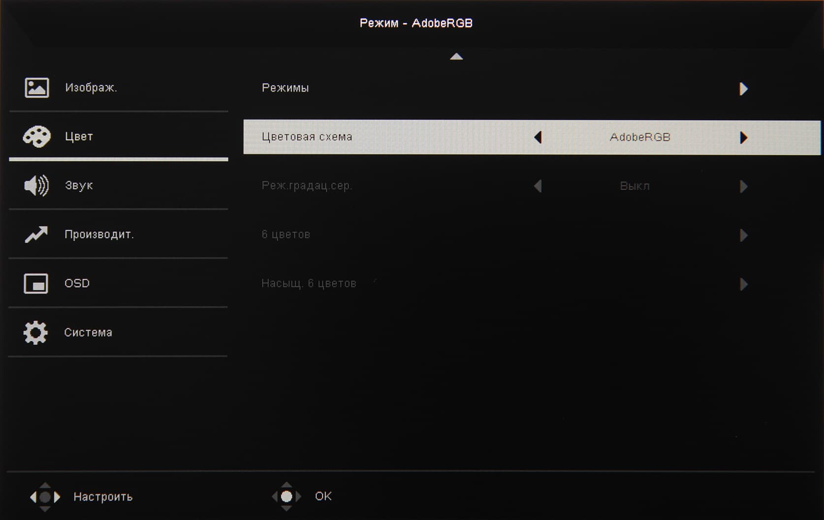 К сожалению, при выборе профилей с корректировкой цветового охвата большинство настроек изображения блокируются и подправить цветовой баланс настройками монитора уже нельзя. Остается или довольствоваться заводскими настройками (они не так уж и плохи), или профилировать монитор и использовать полученный профиль в системе управления цветом.