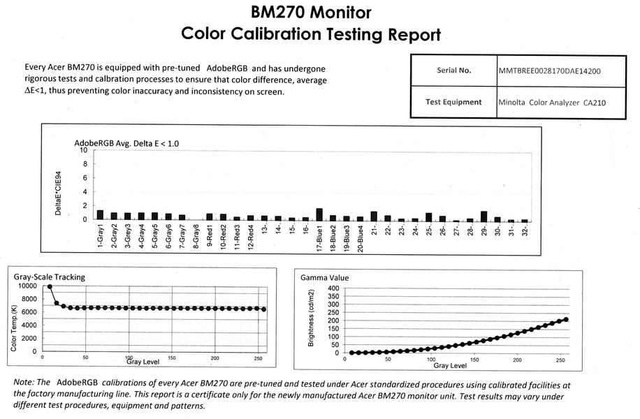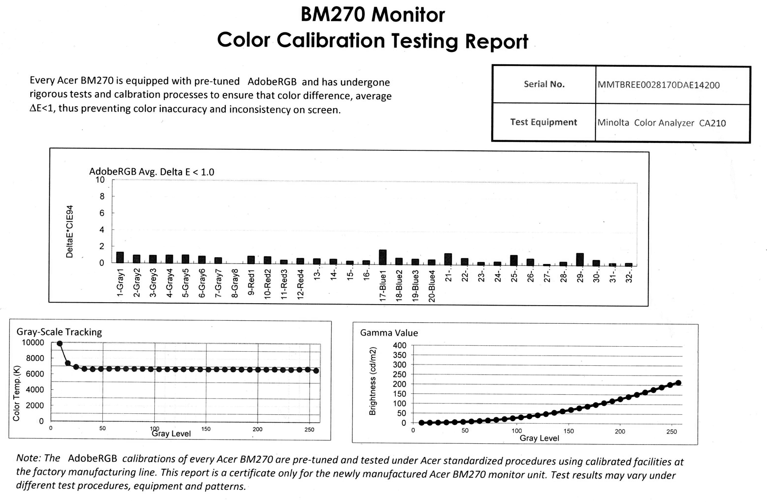 Отметим, что к монитору прилагается отчет (свой к каждому конкретному экземпляру) о качестве цветового баланса после заводской калибровки.