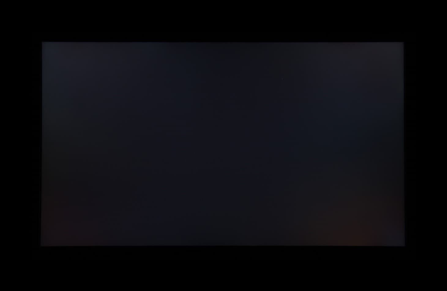 Равномерность всех трех параметров очень хорошая. Контрастность типичная для современной матрицы типа IPS. Фотография ниже дает представление о распределении яркости черного поля по площади экрана: