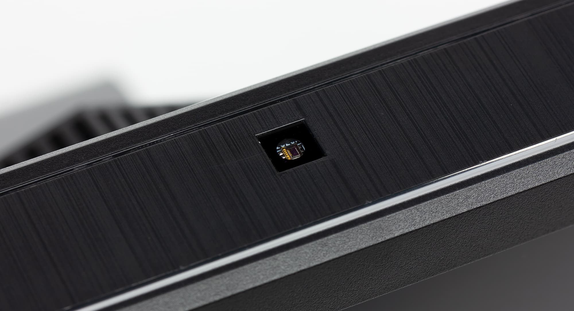 В мониторе есть функция подстройки яркости экрана под уровень внешней освещенности (датчик освещенности находится на верхнем торце блока экрана). Есть три уровня коррекции, в таблице ниже приведены значения яркости экрана для трех уровней в полной темноте и в условиях освещенного искусственным светом офиса (примерно 550 лк):