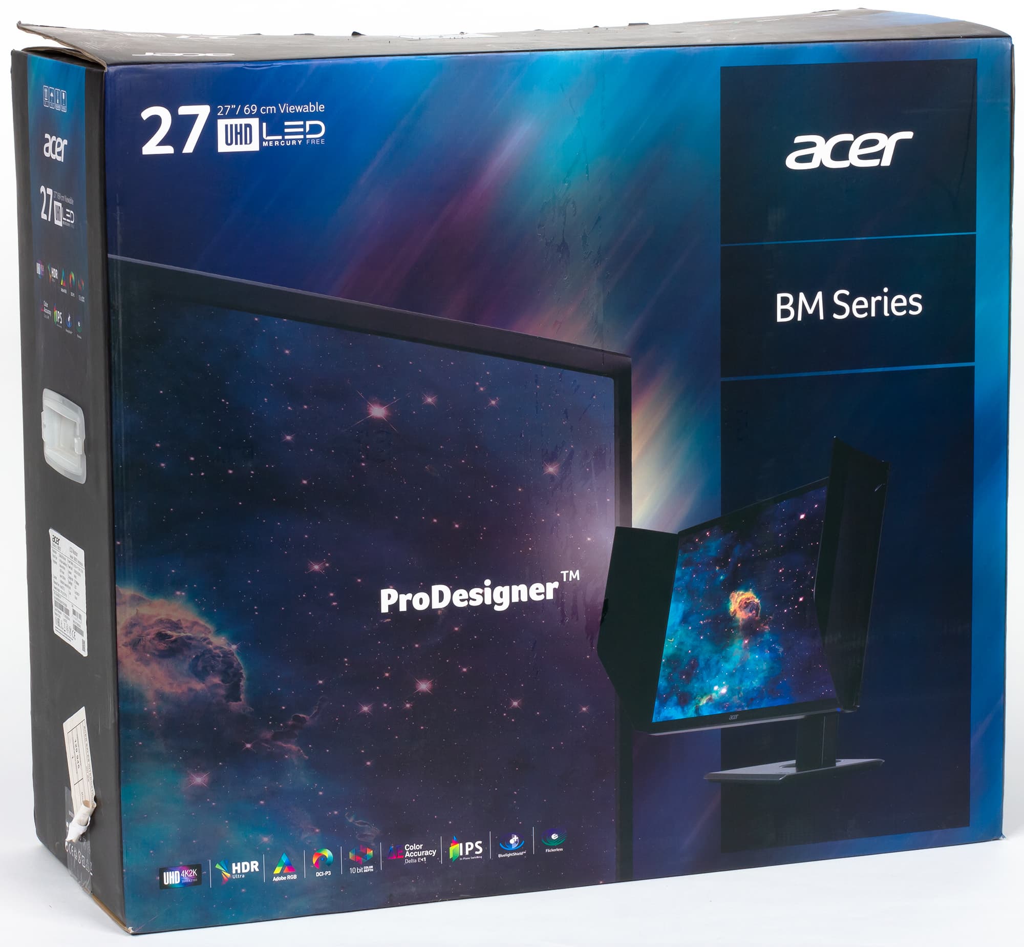 Монитор Acer ProDesigner BM270 имеет строгий классический дизайн профессионального устройства отображения, не отвлекающий пользователя от экрана и не сбивающий восприятие цветов, а дополнительную защиту от влияния внешних условий обеспечивает защитный козырек. Монитор отличает хорошая цветопередача, которую можно подправить многочисленными настройками, и реальная поддержка HDR. Скорее к особенностям, чем к недостаткам стоит отнести отсутствие 10-битного вывода при использовании профессиональных видеокарт и поддержки аппаратной калибровки; также нужно учитывать, что выбор предустановленных профилей, в которых скорректирован цветовой охват, уменьшает количество доступных настроек изображения. В целом монитор Acer ProDesigner BM270 можно считать универсальным, пригодным для выполнения офисной работы, в том числе связанной с выводом на экран большого количества информации, для профессиональной работы с графикой и для видеомонтажа, для игр и для просмотра кино. Далее списками: