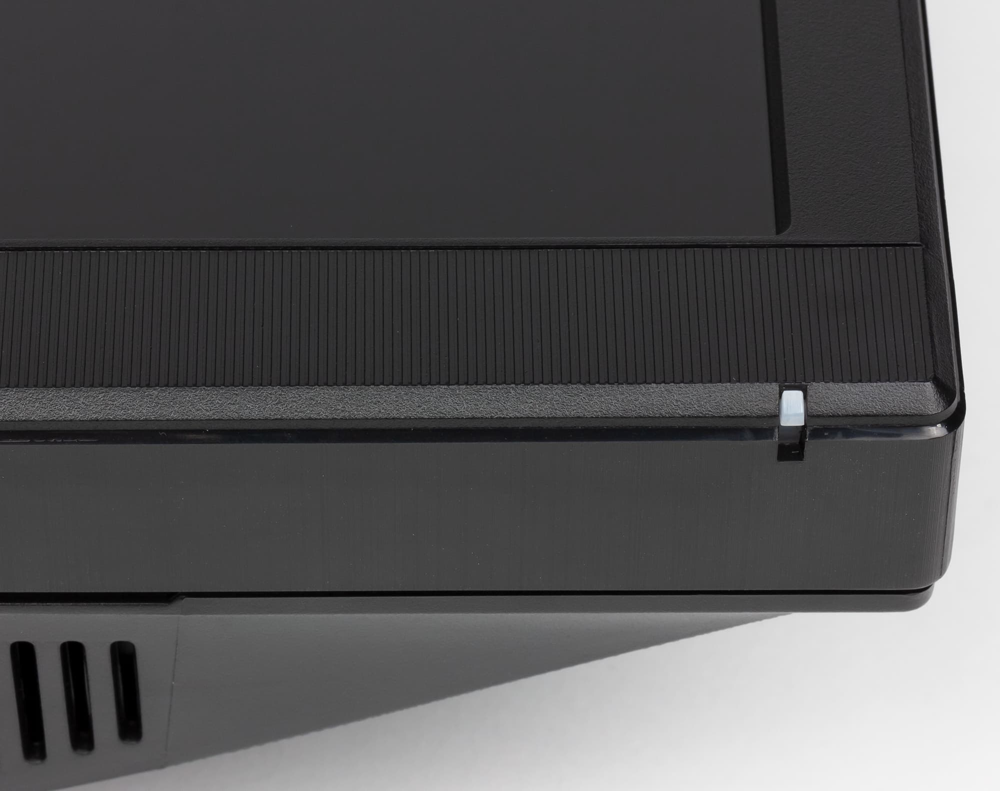На стыке нижнего торца и фронтальной рамки находится белый светорассеиватель индикатора состояния.