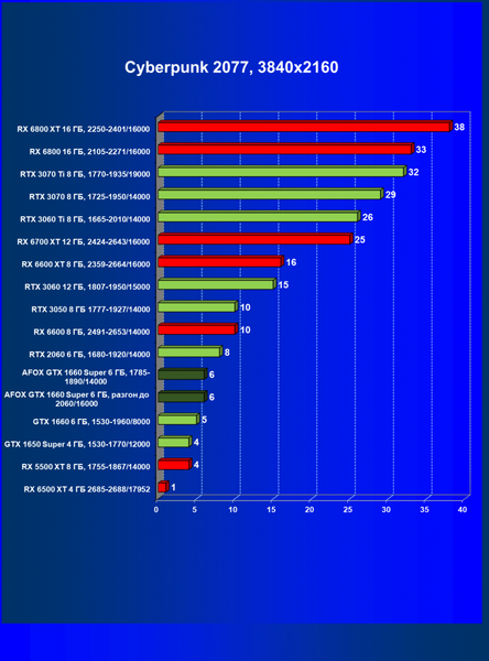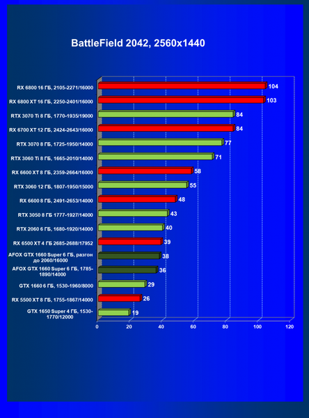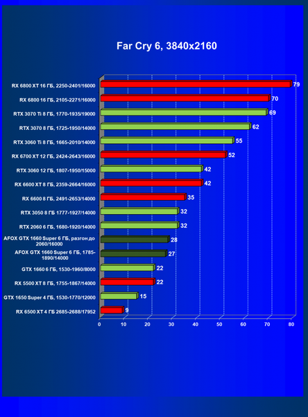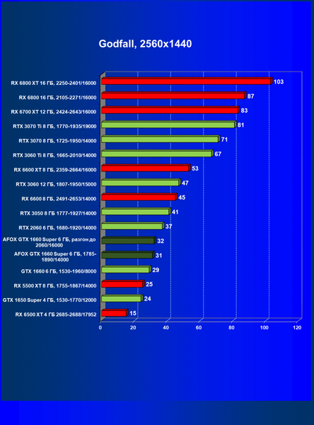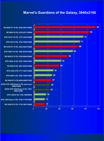 | 08 | RX 6500 XT 4 ГБ, 2685—2688/17952 | 53 | 100 | 19 000 |