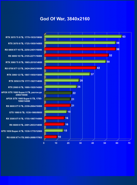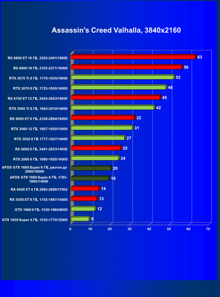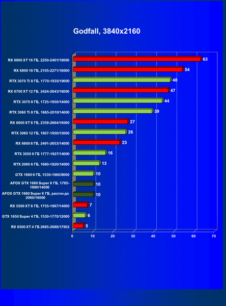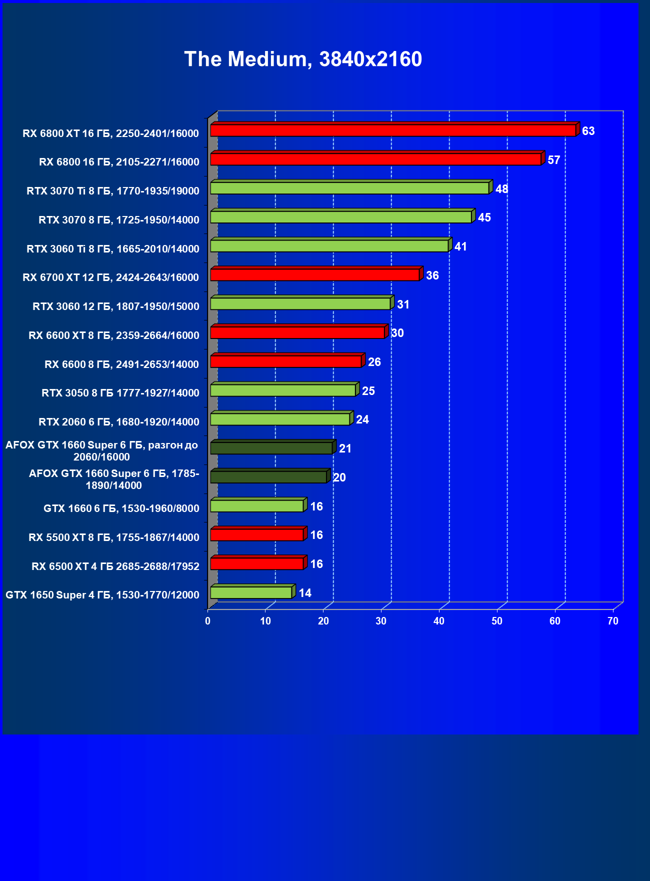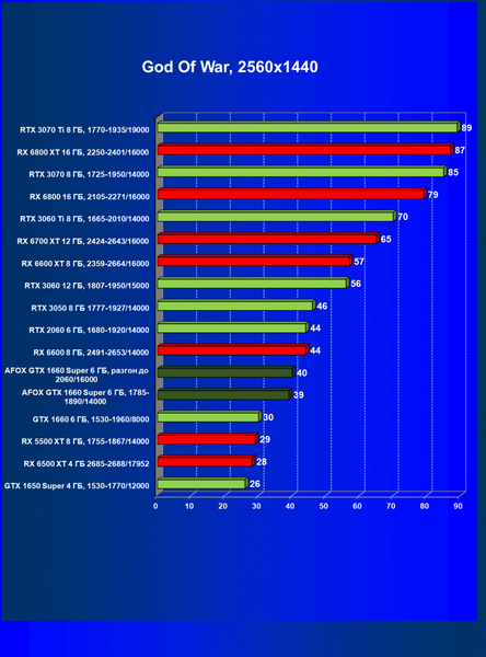 | 13 | Afox GTX 1660 Super 6 ГБ, 1785—1890/14000 | 140 | 64 | 22 000 |