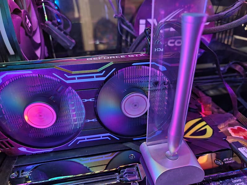 Штатные частоты памяти и ядра у карты Afox почти равны референсным значениям (максимум по ядру был чуть ниже референс-аналога). Карта стабильно работала при ручном разгоне ядра до 2060 МГц, а памяти — до 16 ГГц. Это примерно на 4,3% выше референсных величин, и такой разгон обеспечил прирост производительности в 4%.