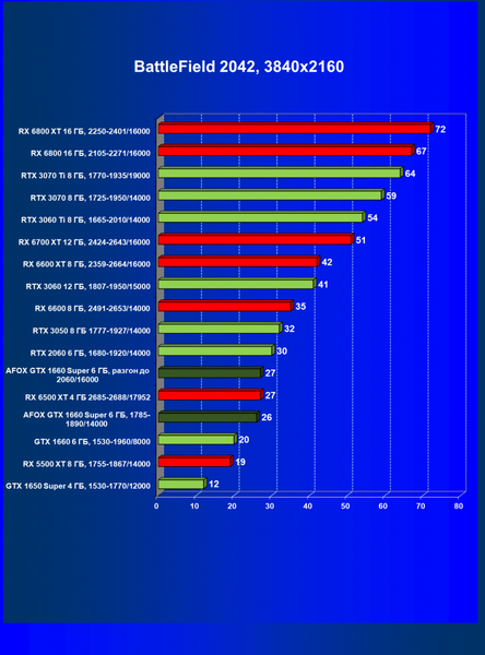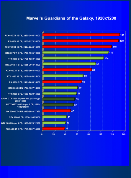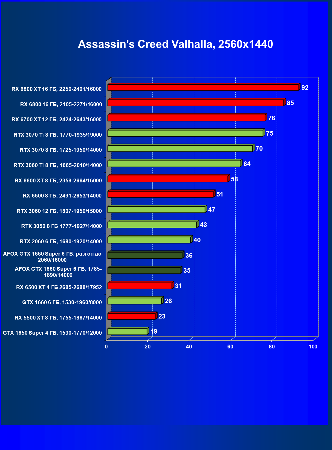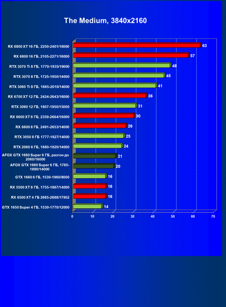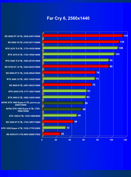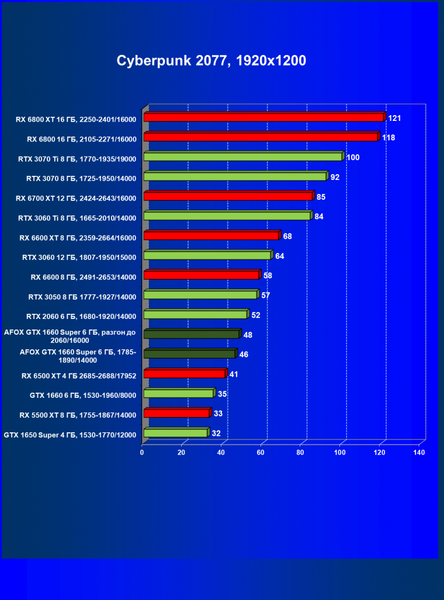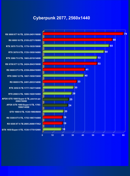 | 12 | Afox GTX 1660 Super 6 ГБ, разгон до 2060/16000 | 140 | 64 | 22 000 |