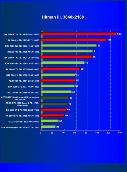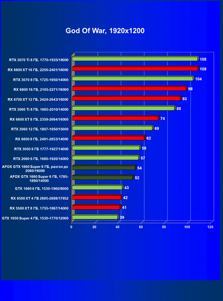 | 14 | GTX 1660 6 ГБ, 1530—1960/8000 | 110 | 61 | 18 000 |