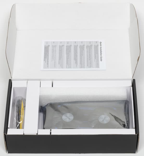 Комплект поставки минимален: только руководство пользователя и переходник питания с 4-контактного периферийного разъема на 8-контактный PCIe.