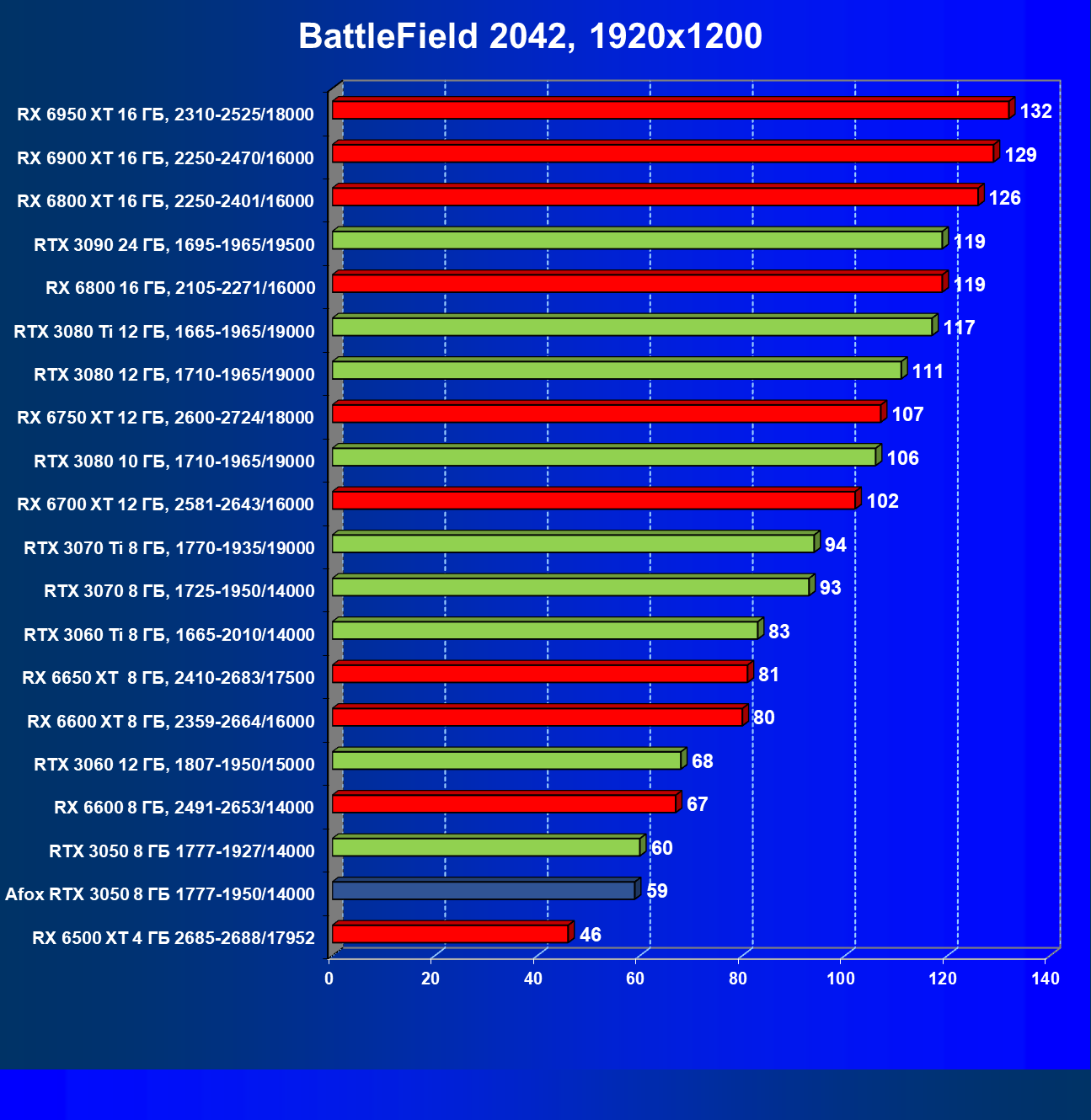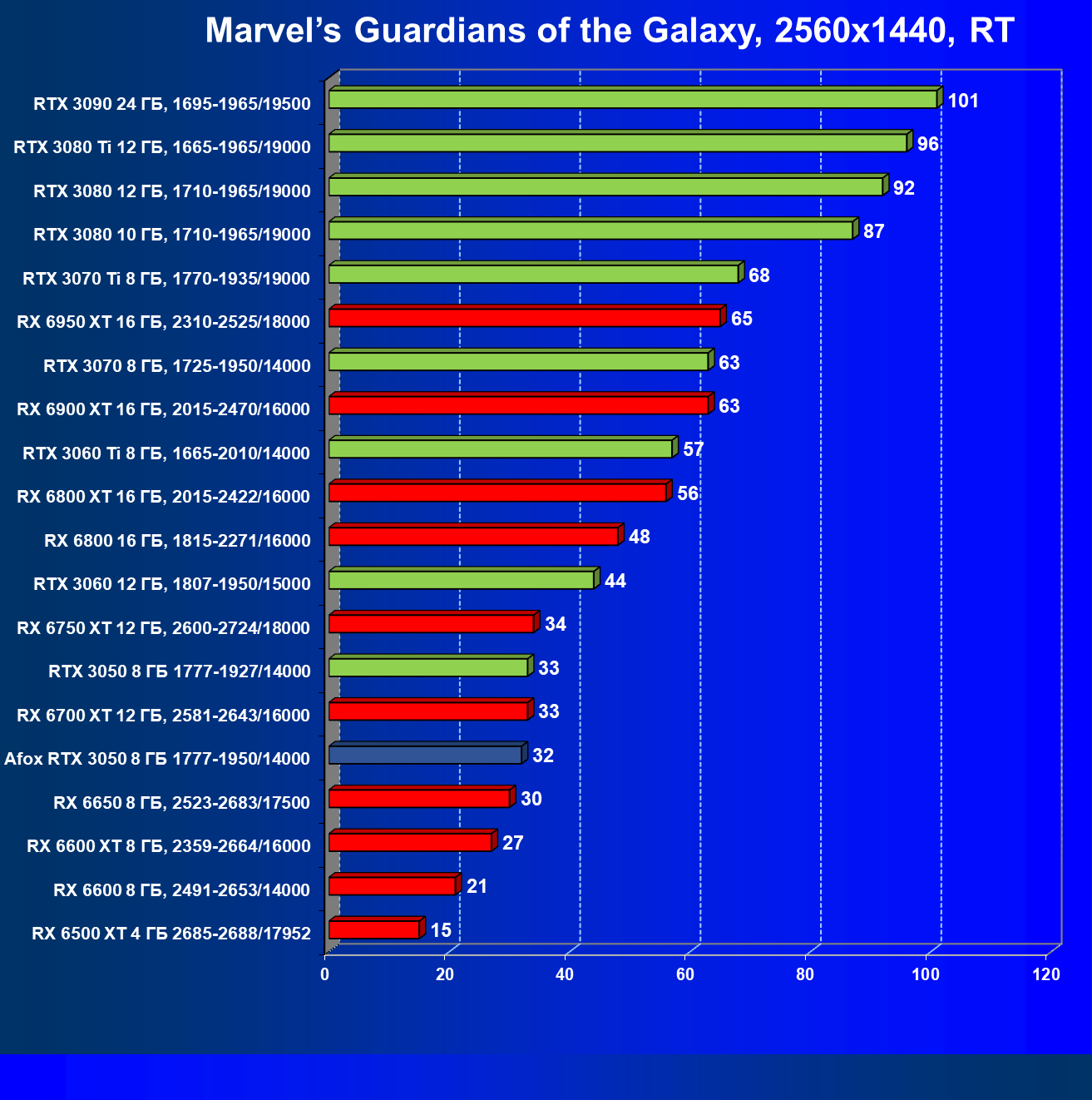 | 18 | Afox GeForce RTX 3050 D6H2 (8 ГБ), 1777—1950/14000 | 164 | 75 | 22 000 |