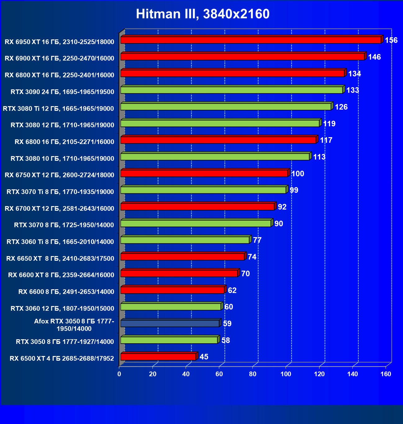 | 19 | RTX 3050 8 ГБ, 1777—1927/14000 | 164 | 59 | 28 000 |