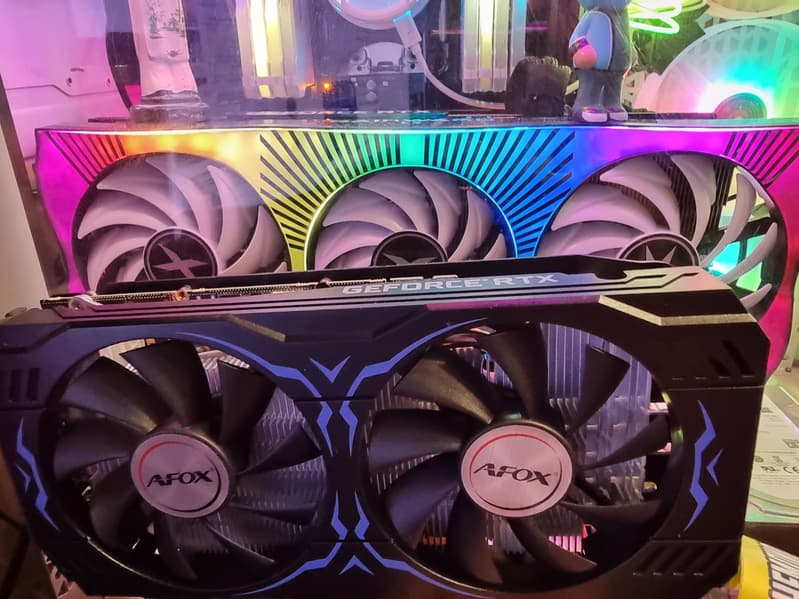 Карта Afox так же великолепно смотрится даже при включении трассировки лучей, но исключительно в разрешении Full HD, и обязательно включать DLSS (или FSR). Модели из стана «красных» Radeon RX 6600 и RX 6600 XT при включении трассировки значит весомо теряют скорость, но включение FSR с их стороны компенсирует потерю FPS и дает только RX 6600 XT занимать значительно весомое лидерство и оправдывать свой более дорогой прайс, а карта Radeon RX 6600 с трассировкой и FSR находится рядом с нашей обозреваемой картой Afox, однако при этом она сильно дороже последней. Конечно, очень многое зависит от конкретной игры, и под какую технологию FSR/DLSS она больше всего оптимизирована.