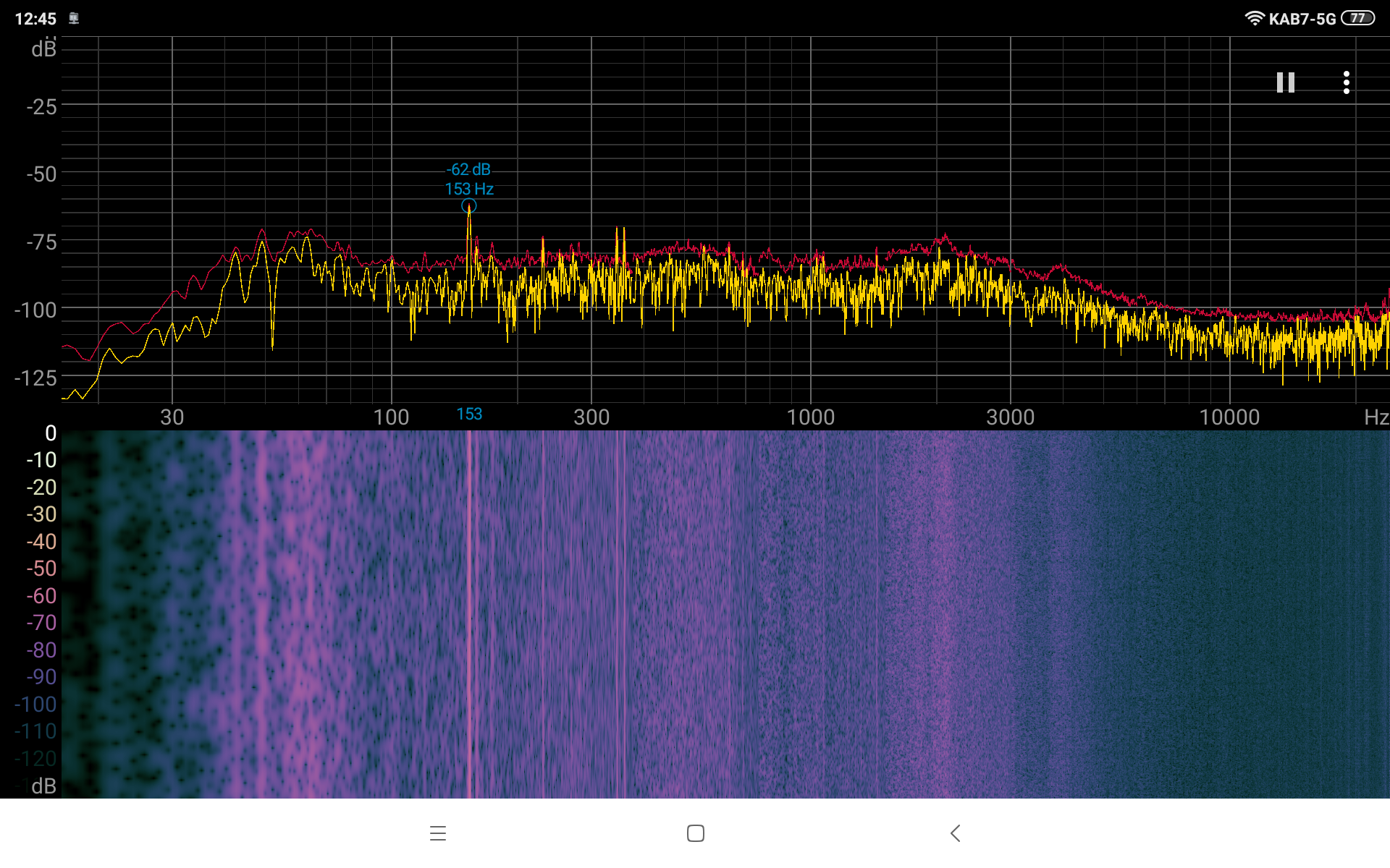 Спектрограмма шума достаточно ровная, но пара пиков была.