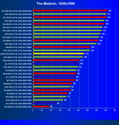 - Стандартные результаты тестов без использования аппаратной трассировки лучей в разрешениях 1920×1080, 2560×1440 и 3840×2160