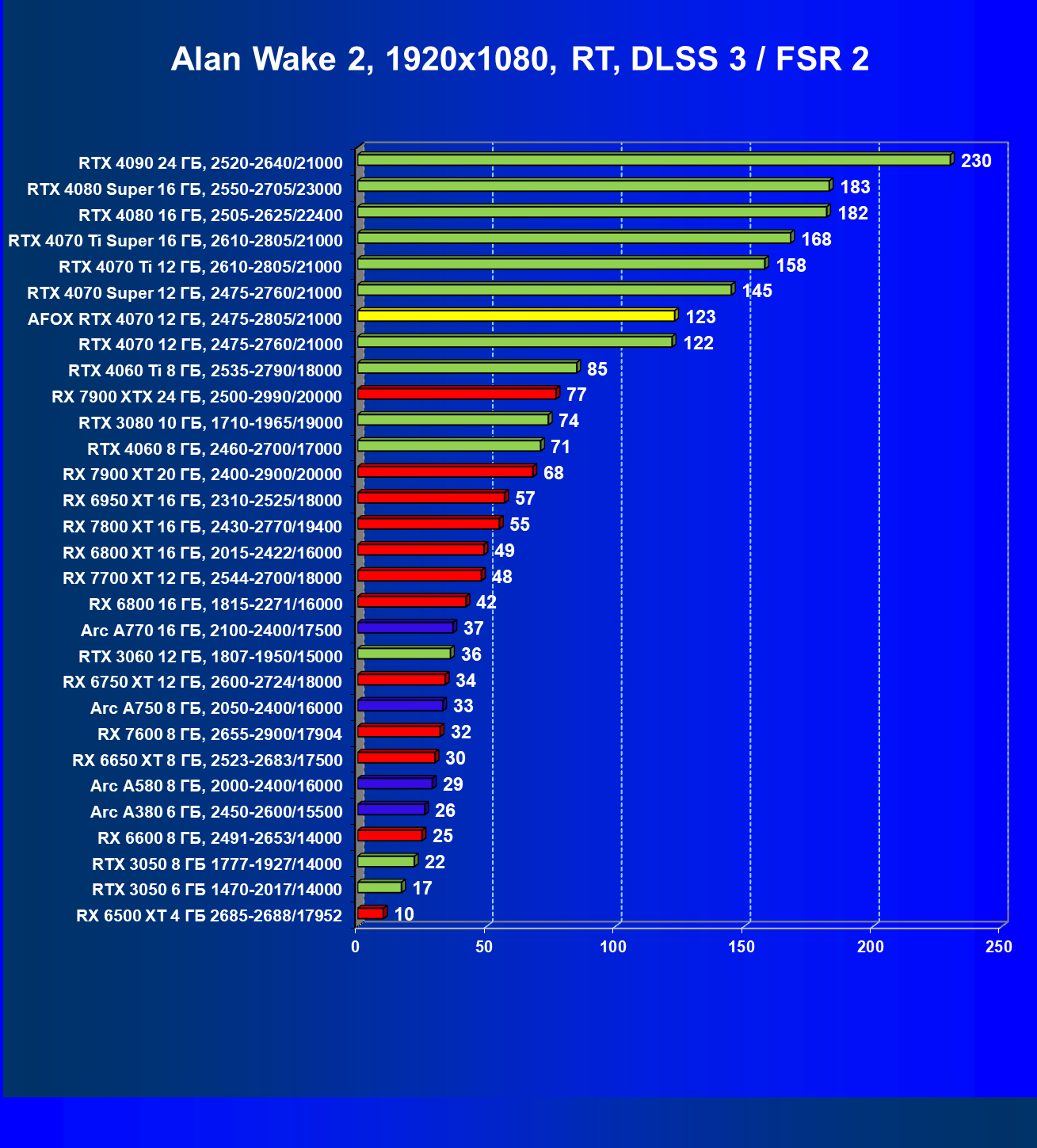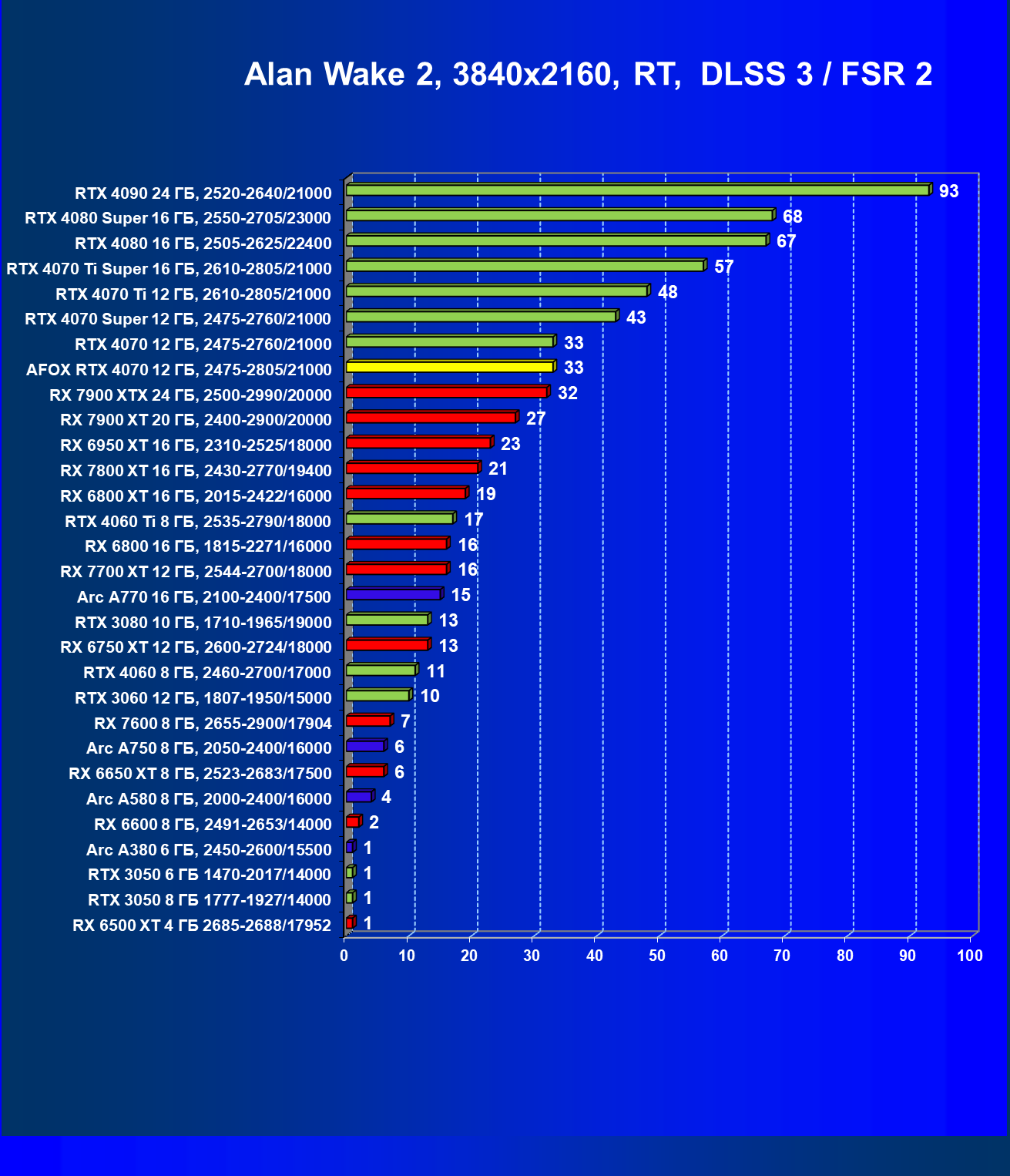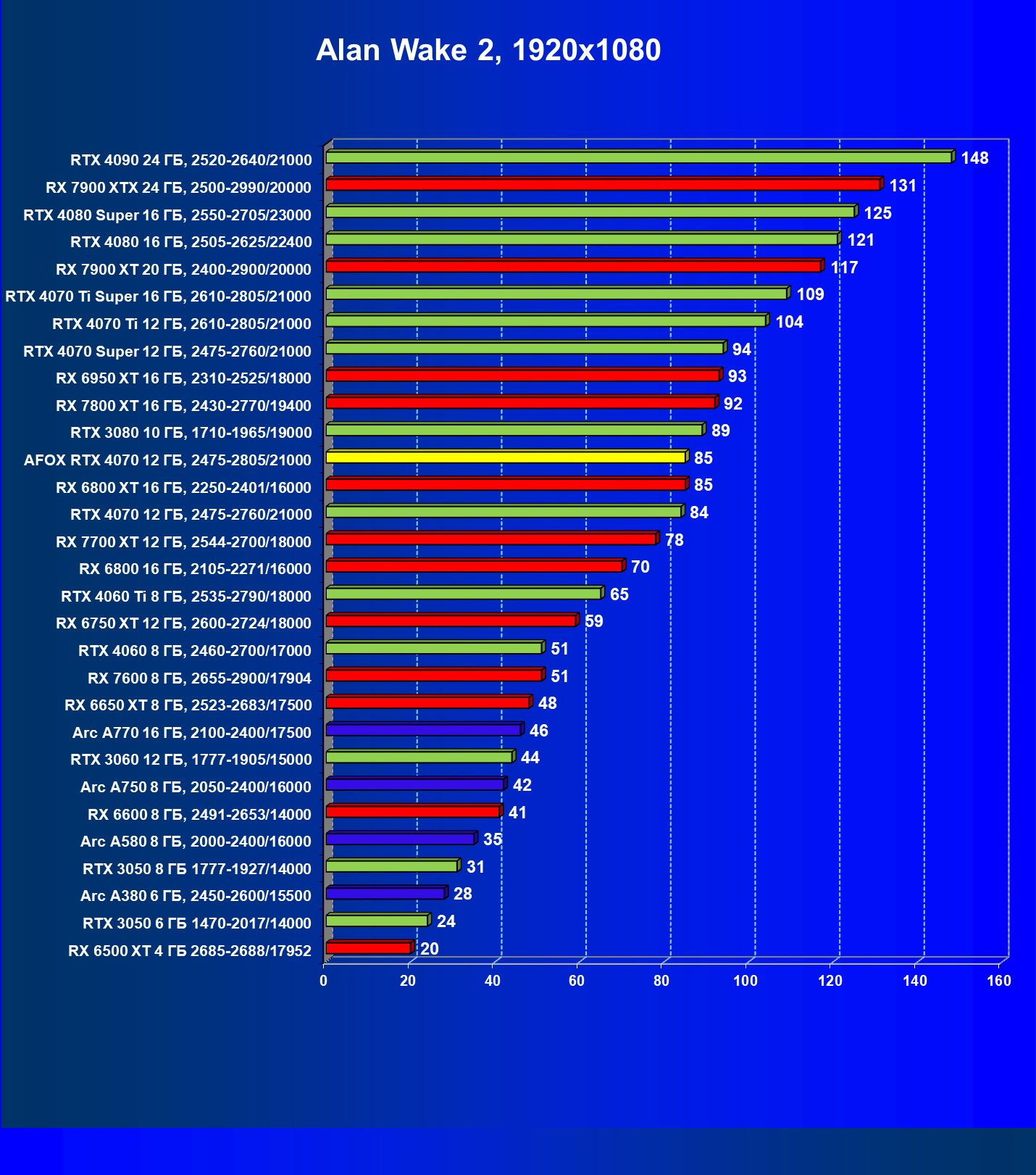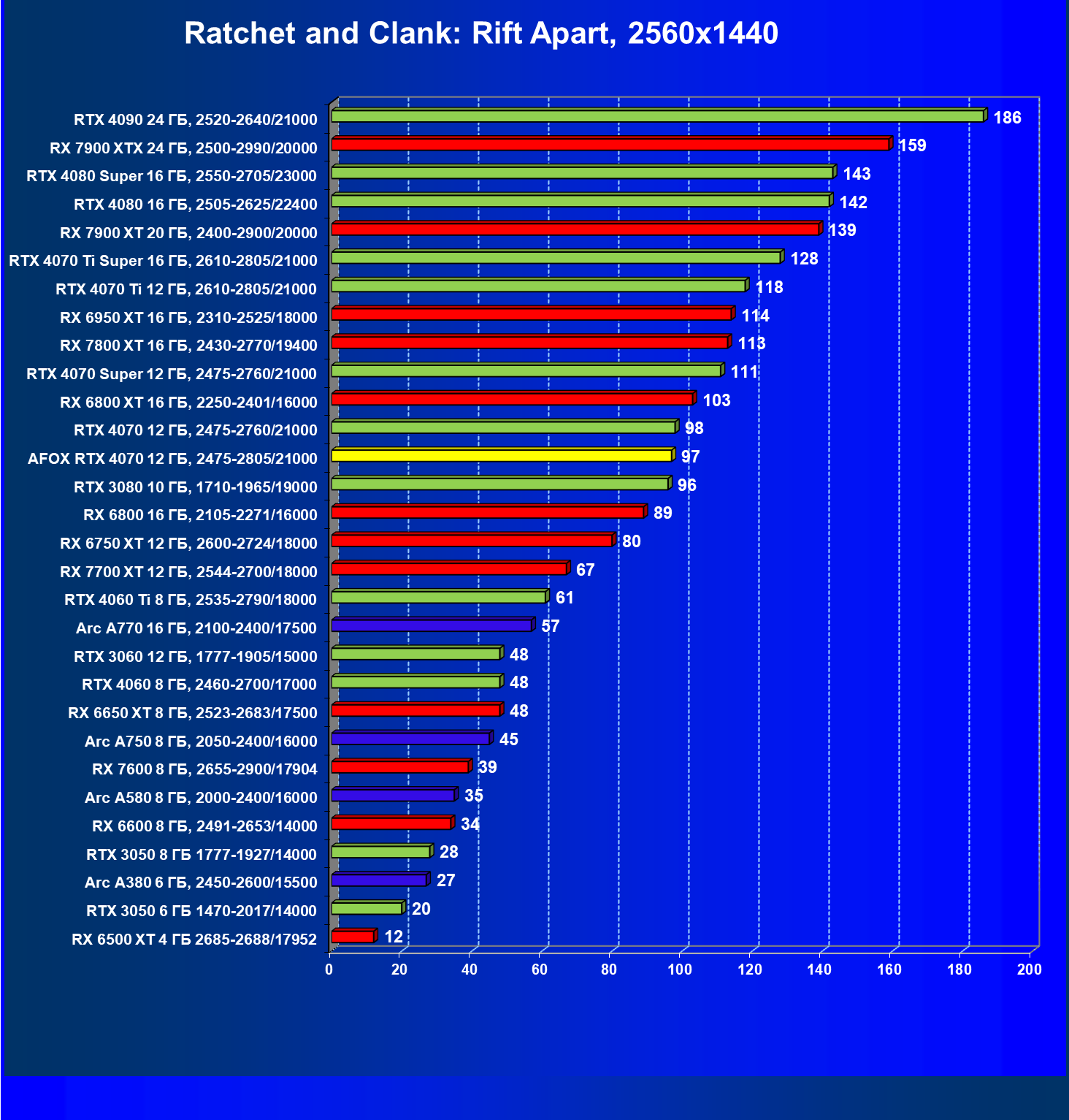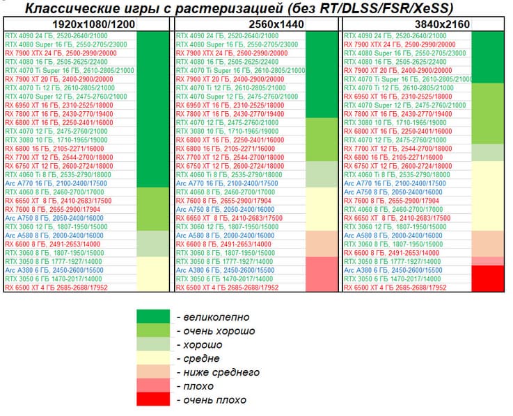 | 14 | RX 7800 XT 16 ГБ, 2430—2770/19400 | 960 | 141 | 68 000 |