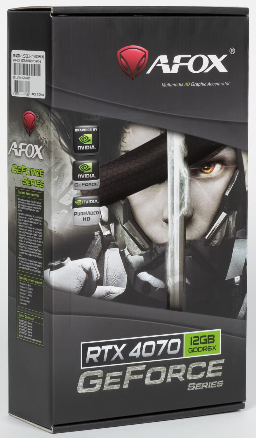 Сегодня мы изучаем видеокарту компании Afox Corporation, базирующейся в Шэньчжэне. В отличие от вышеупомянутых брендов, продукты данной компании хорошо известны за пределами КНР, однако на российский рынок попадали только самые бюджетные решения Afox. А ведь в ассортименте компании имеются и весьма мощные и дорогие графические ускорители. Года 3 назад начались первые поставки на наш рынок весьма производительных решений Afox, и вот очередь дошла до серии GeForce RTX 40. Встречаем GeForce RTX 4070 в варианте Afox — пока это самая производительная видеокарта последнего поколения у данной компании, ожидается освоение производства GeForce RTX 4070 Super и остальных последних новинок Nvidia.