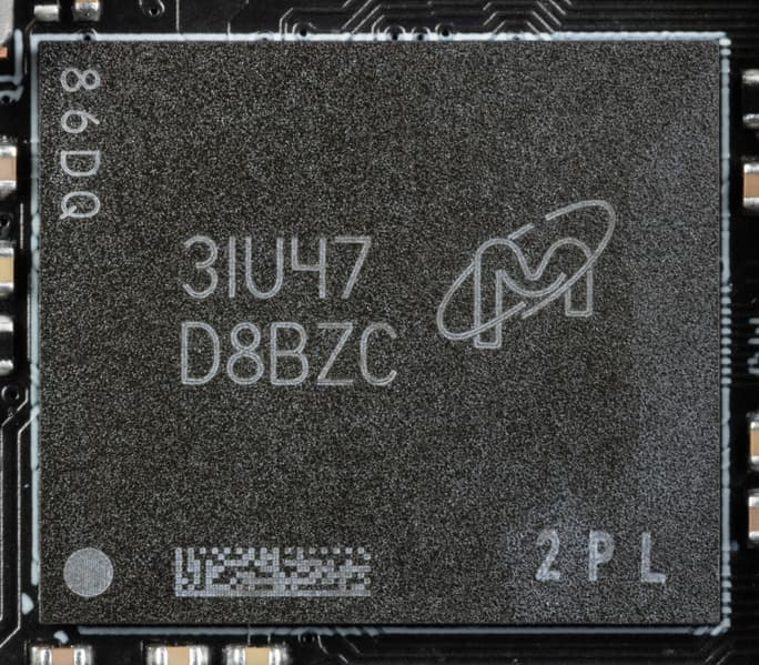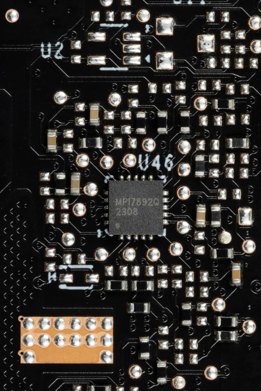 Питанием микросхем памяти управляет ШИМ-контроллер MPI7892Q (Monolith Power Systems), также расположенный на оборотной стороне PCB.