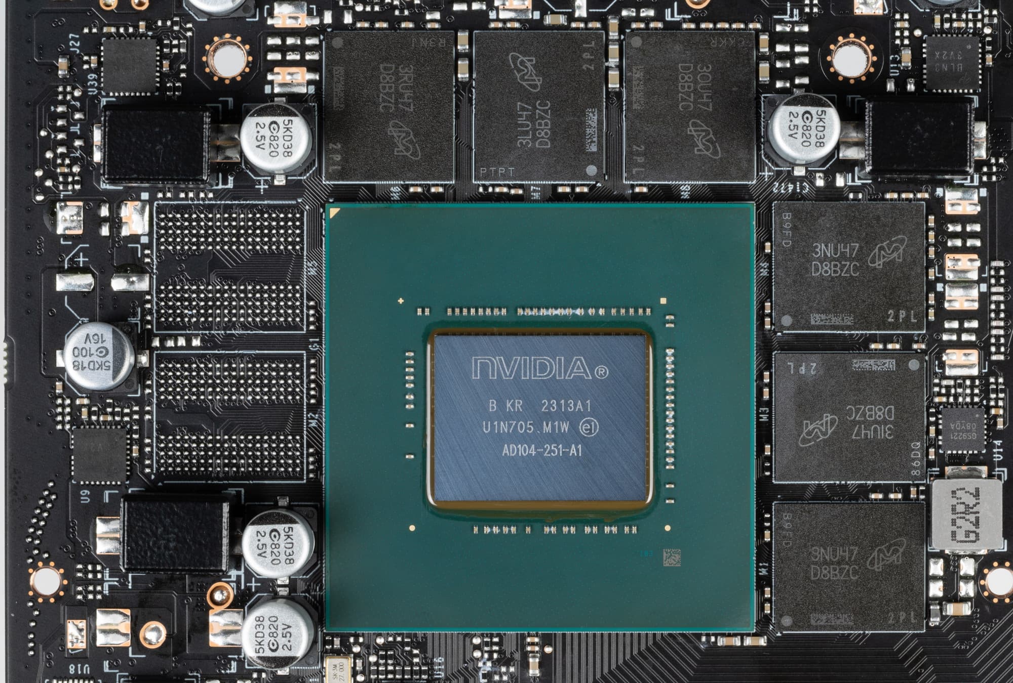 Ядро имеет маркировку AD104-251 (у полноценного чипа, используемого в GeForce RTX 4070 Ti, маркировка заканчивается на 400/401, у GeForce RTX 4070 Super — на 350/351), дата выпуска — 13-я неделя 2023 года.