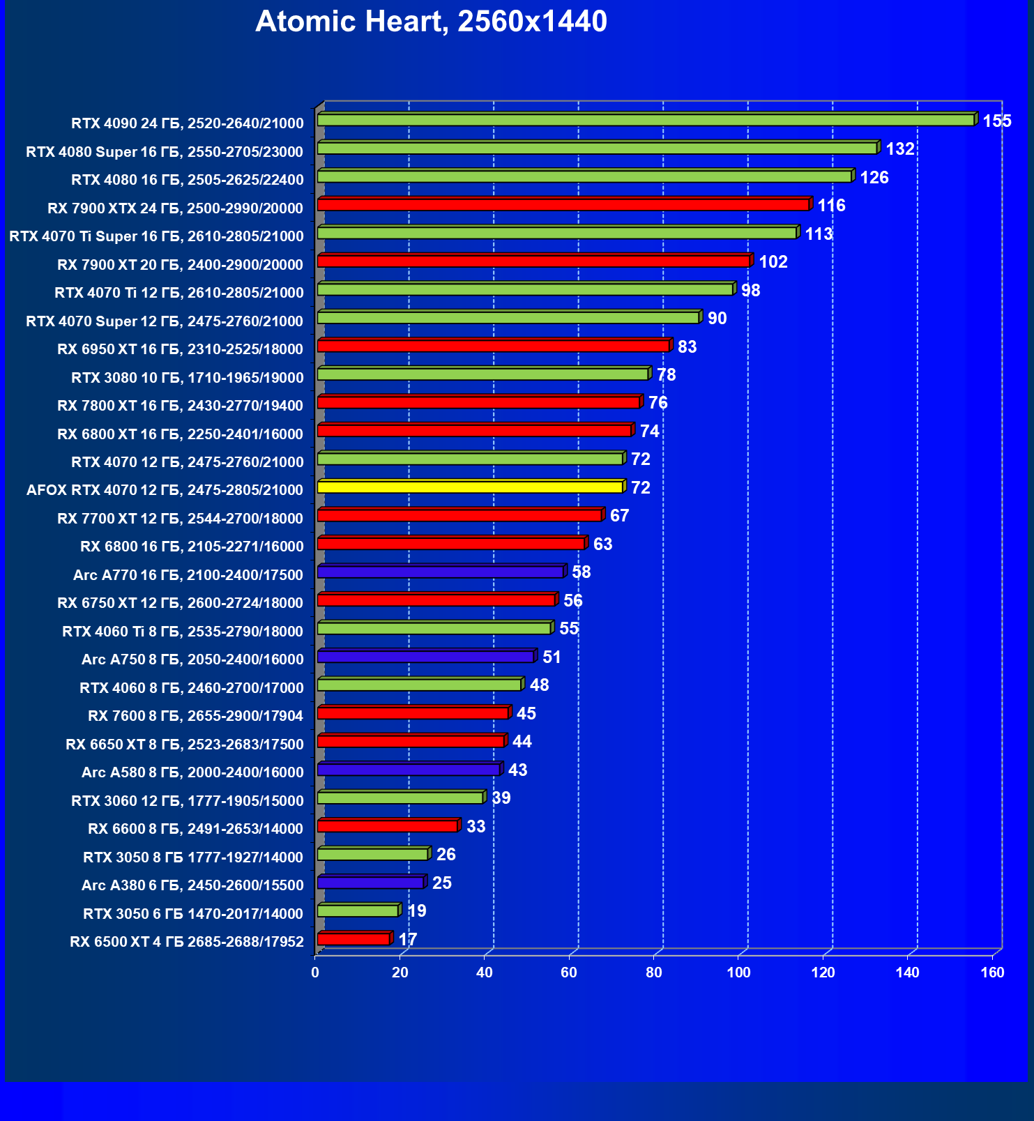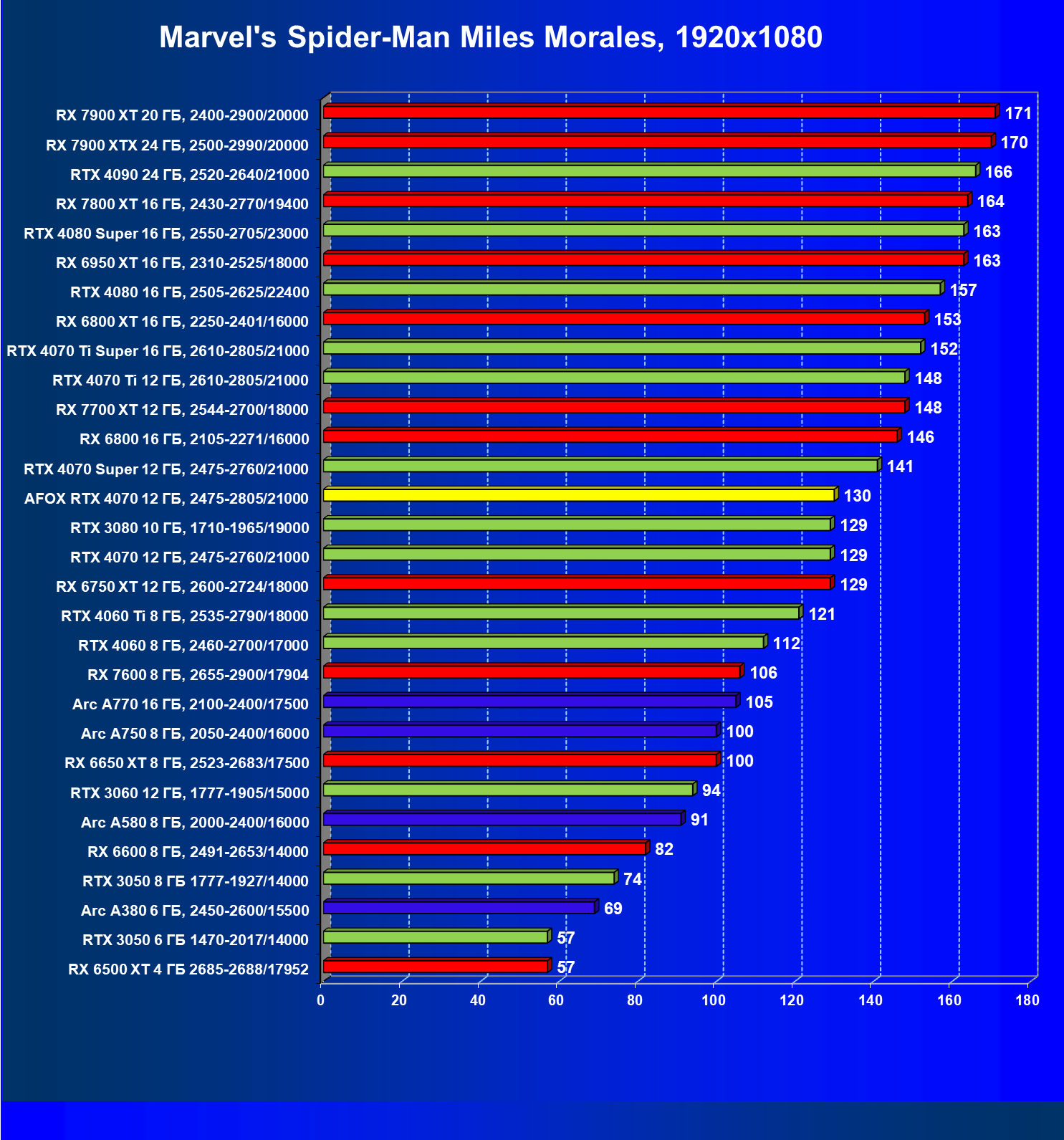 | 04 | Afox RTX 4070 12 ГБ, 2475—2805/21000 | 228 | 1322 | 58 000 |
