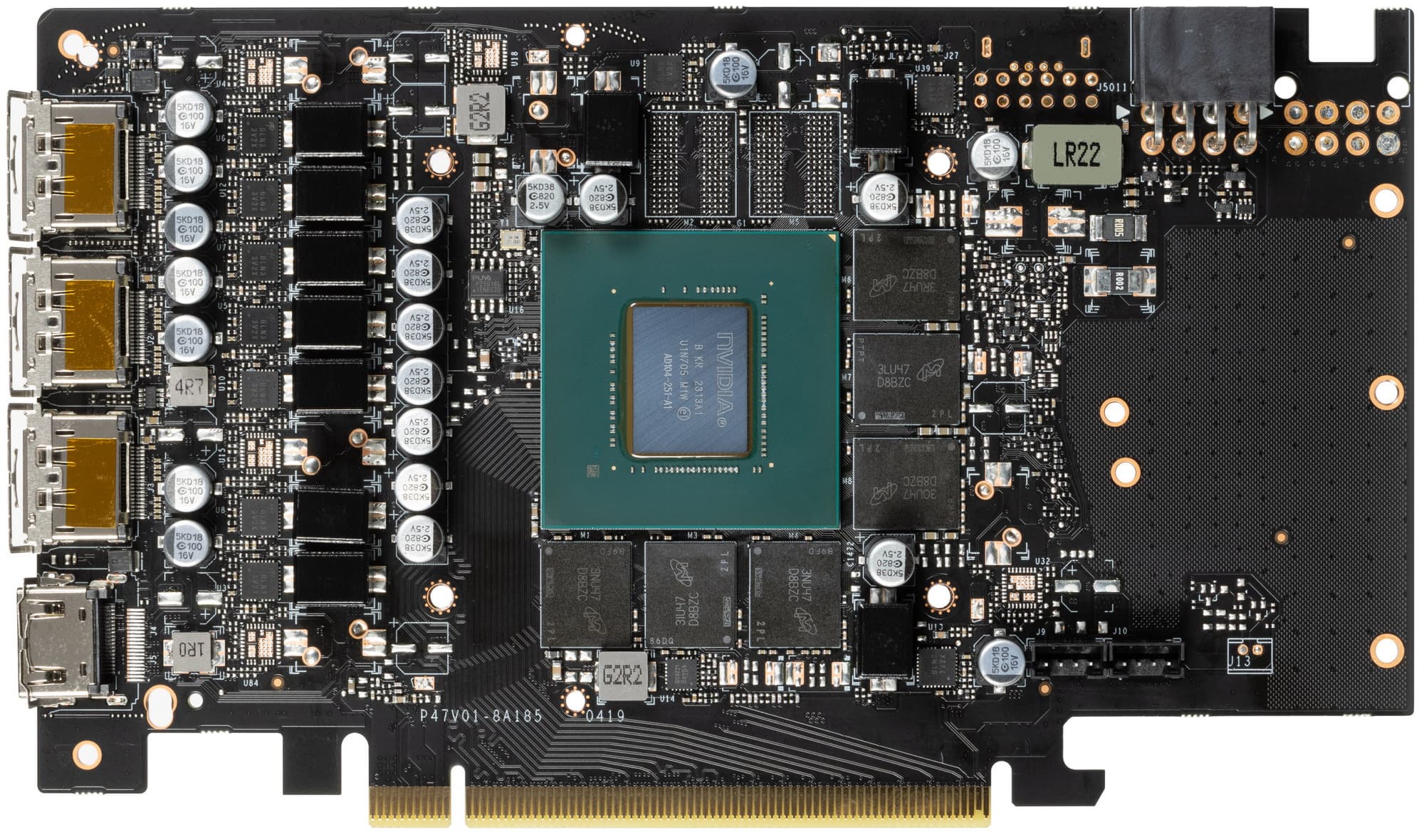Мы сравниваем эту карту с аналогом Palit — та появилась у нас в лаборатории первой, к тому же данный производитель в плане разводки PCB всегда следует эталонному дизайну. Отличия у карт незначительные: немного отличаются системы питания, размеры печатных плат, расположение гнезд питания.