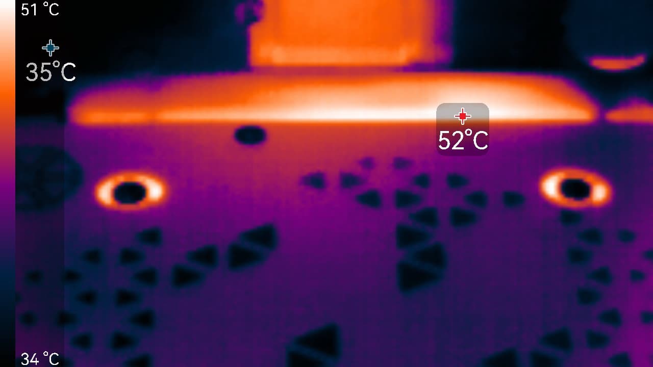 Максимальный нагрев наблюдался в центре и около разъема PCIe.