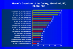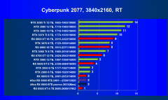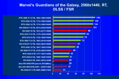 Результаты тестов со включенной аппаратной трассировкой лучей и/или DLSS / FSR в разрешениях 1920×1200, 2560×1440 и 3840×2160