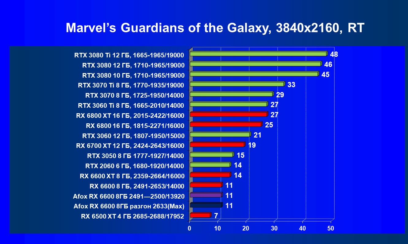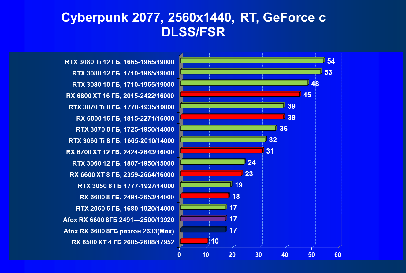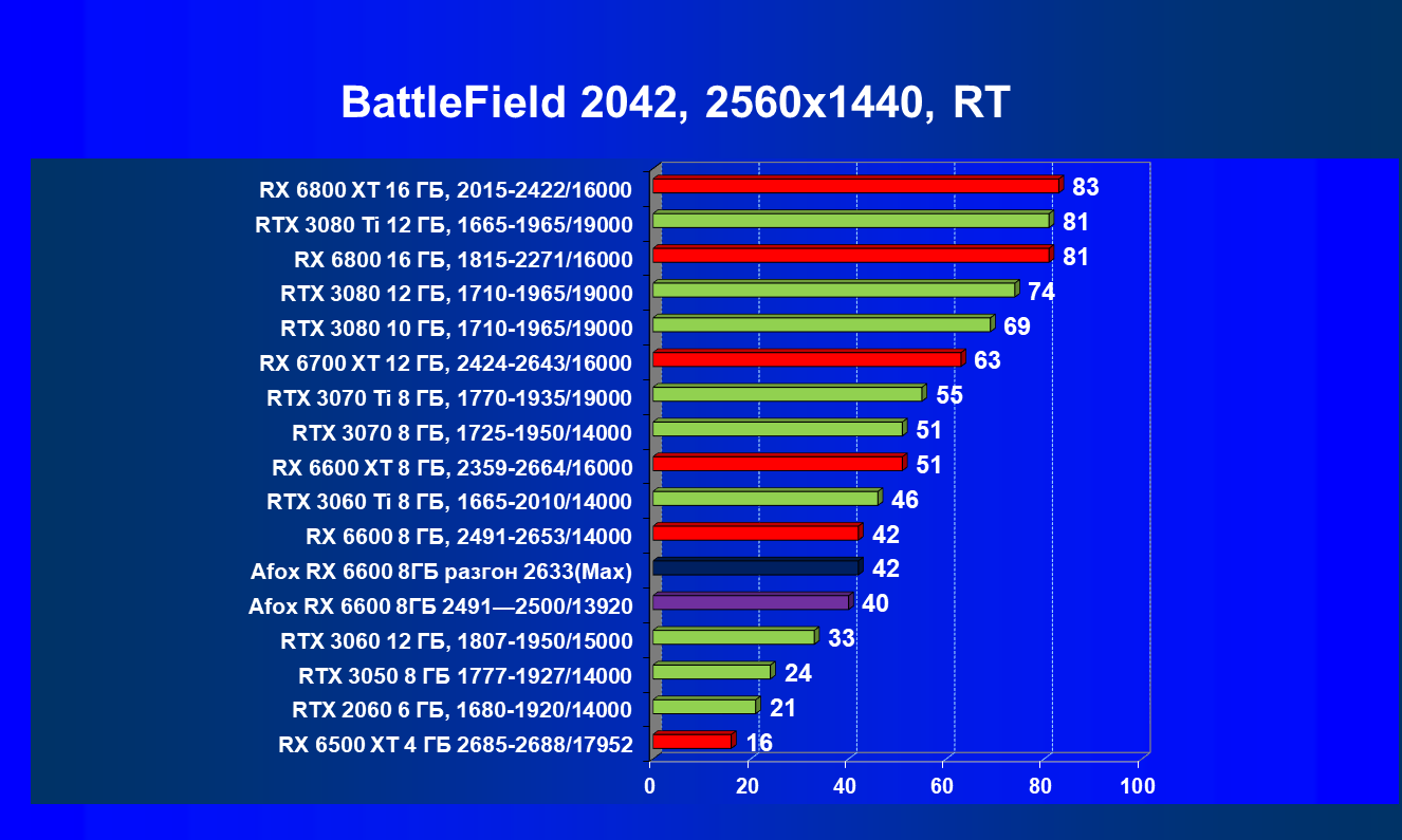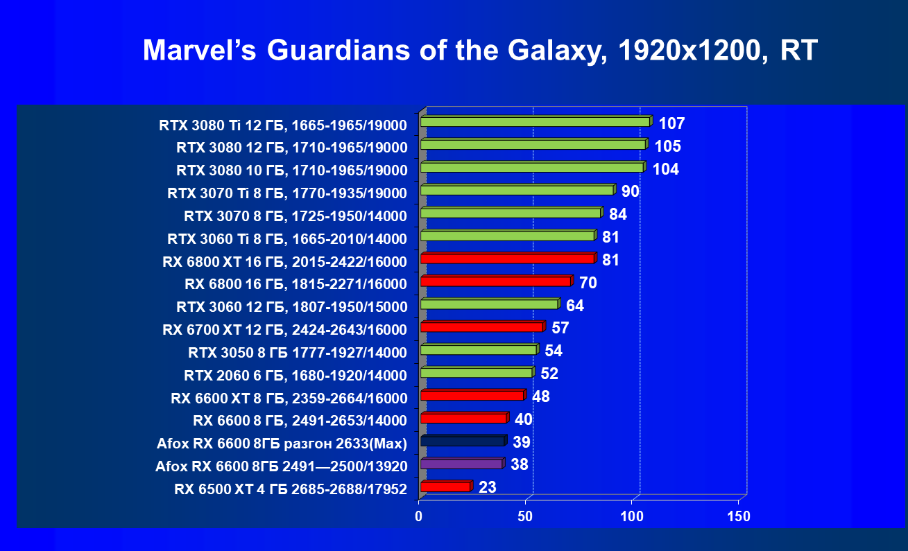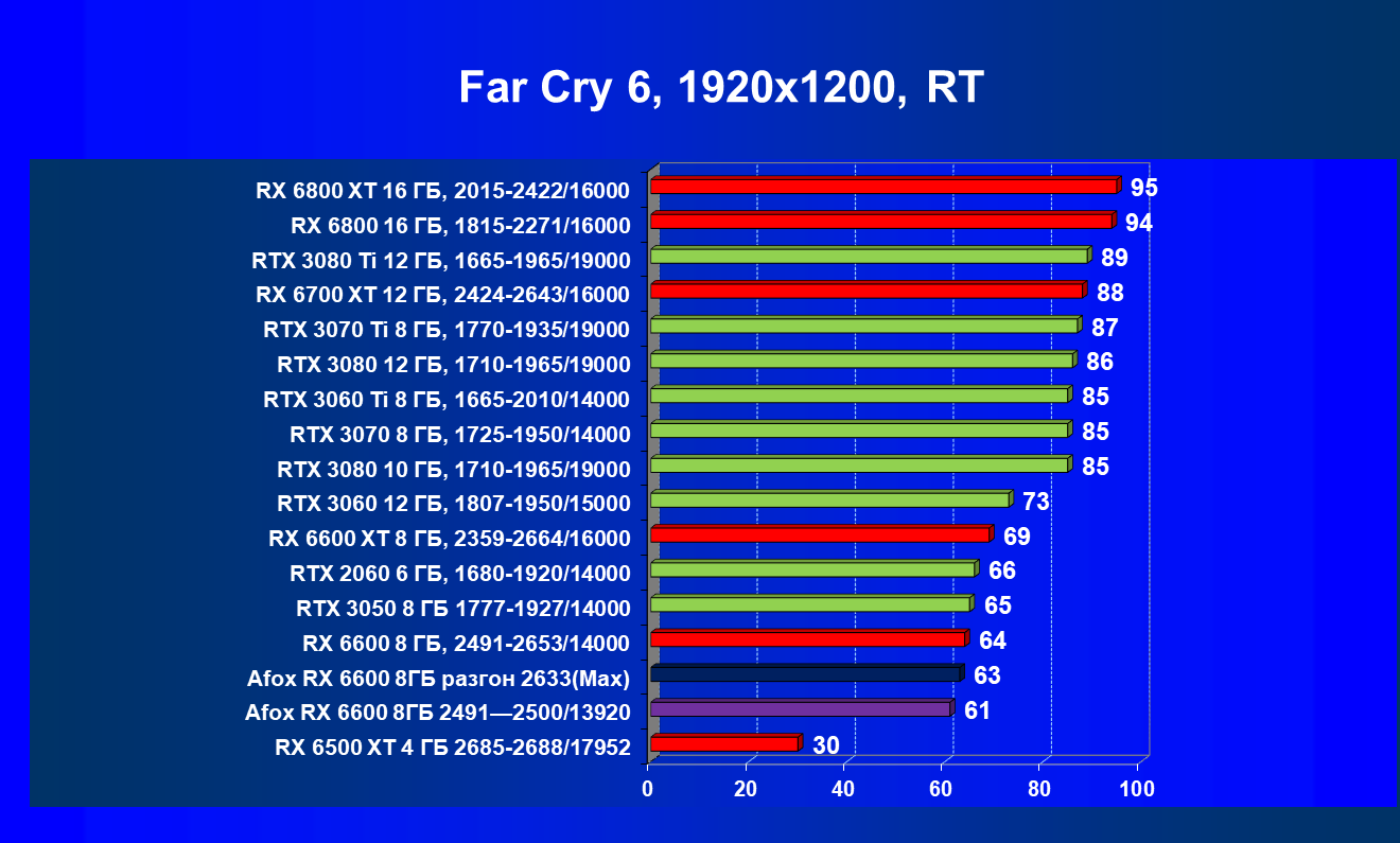| 12 | Afox RX 6600 8 ГБ, разгон до 2633/14400 | 180 | 55 | 33 000 |