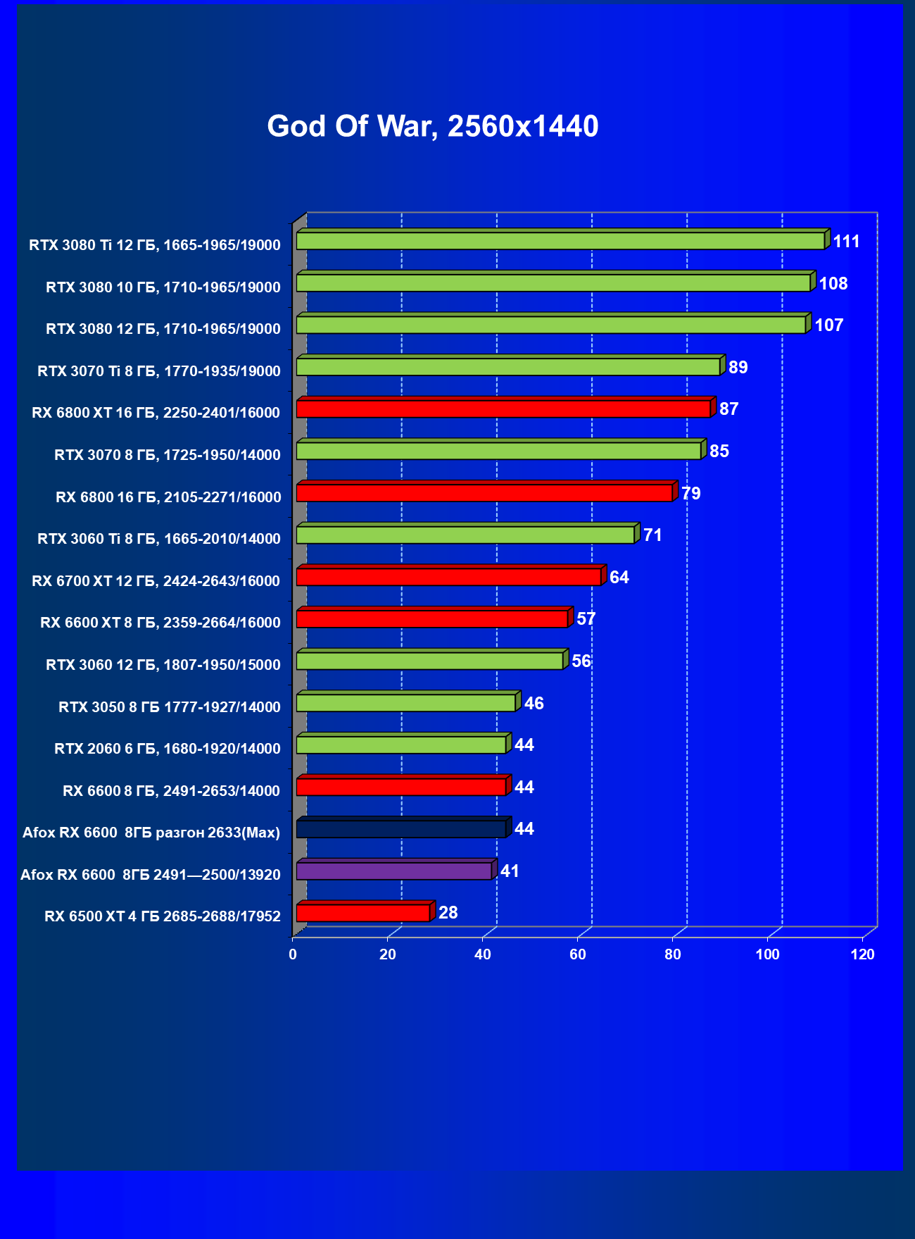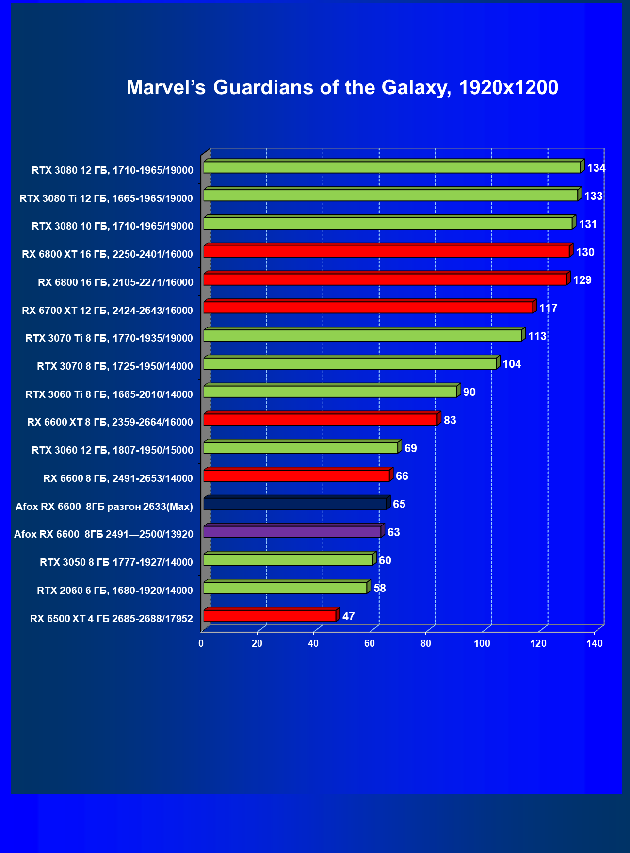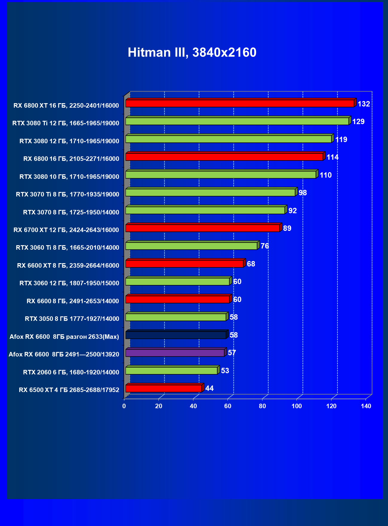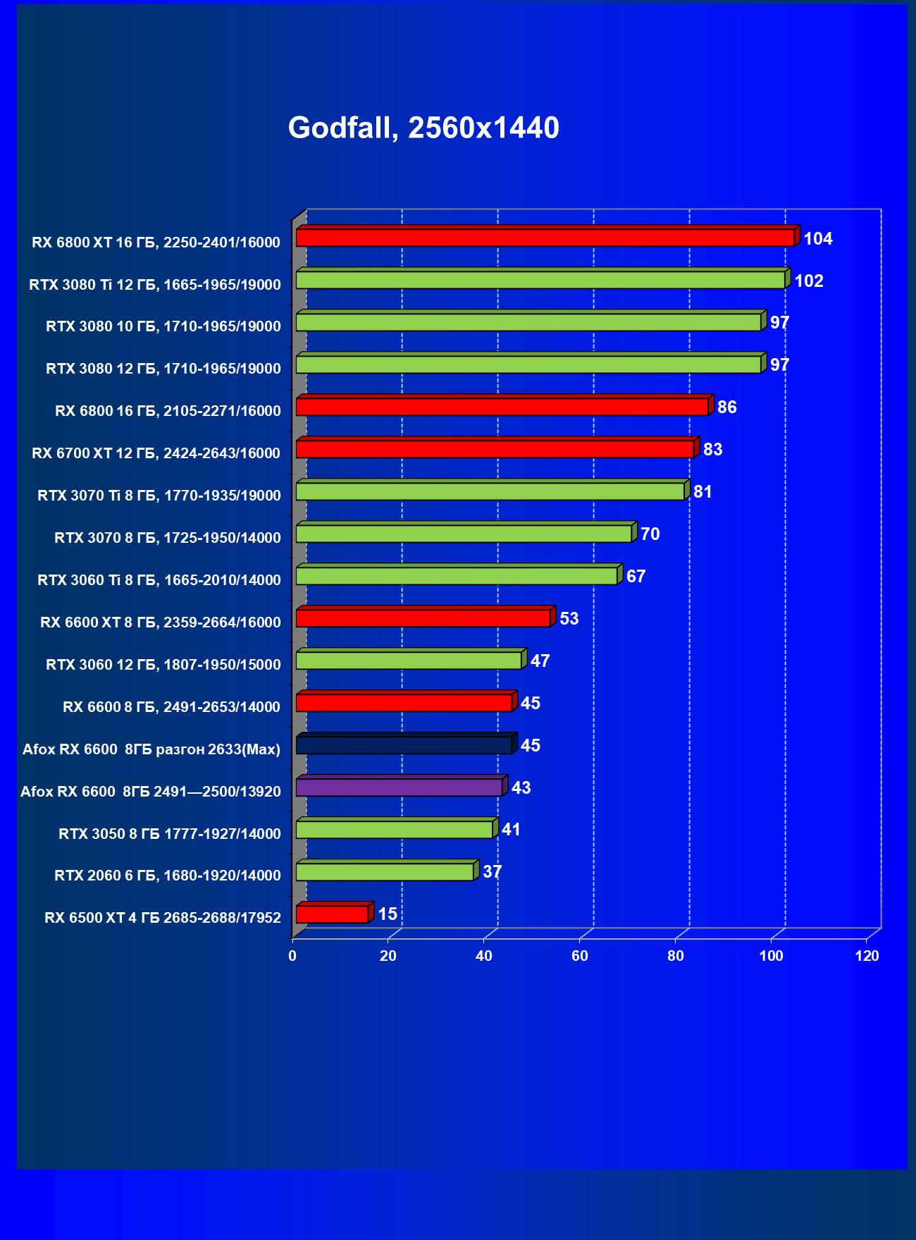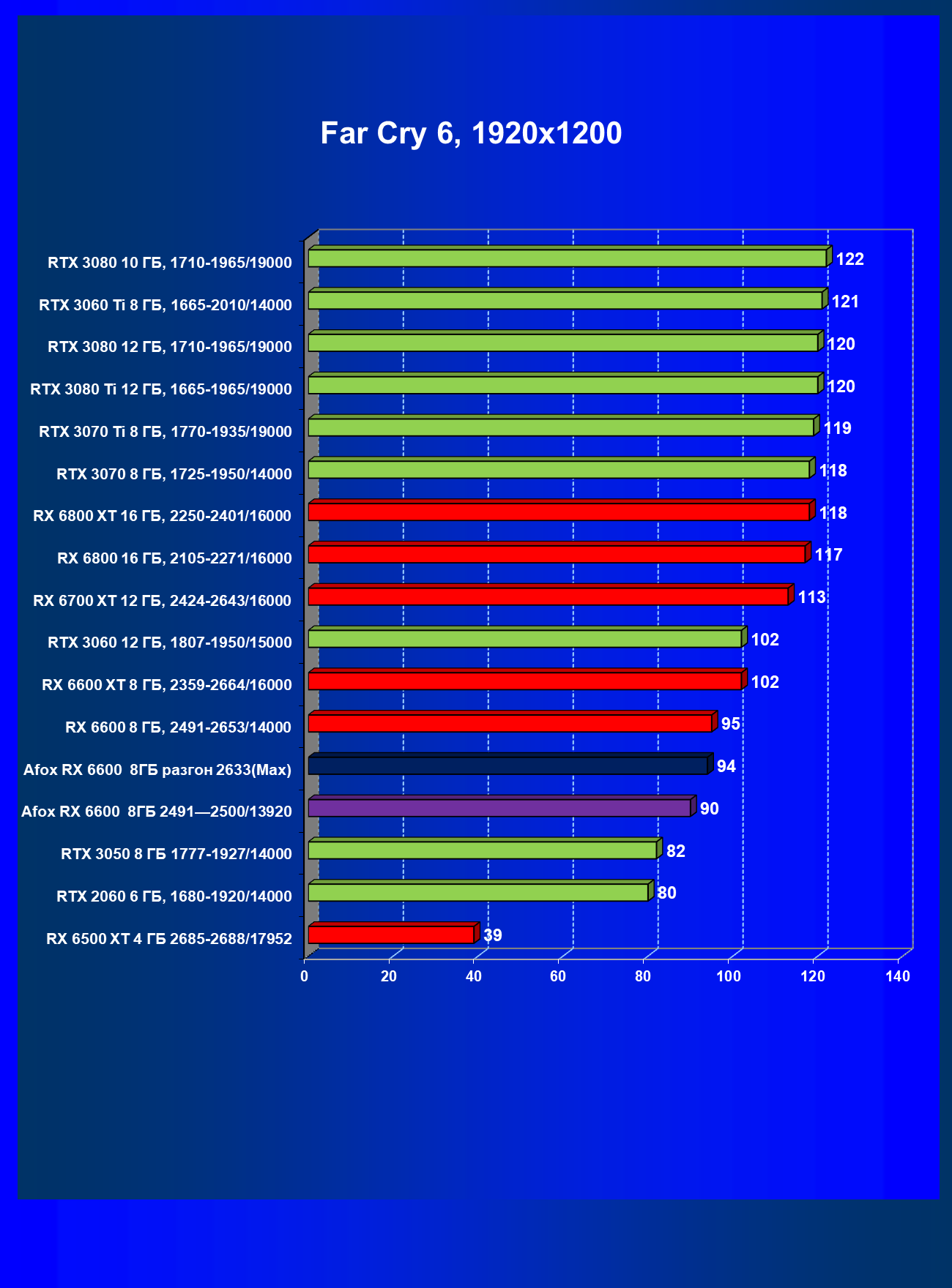 | 12 | Afox RX 6600 8 ГБ, разгон до 2633/14400 | 180 | 55 | 33 000 |