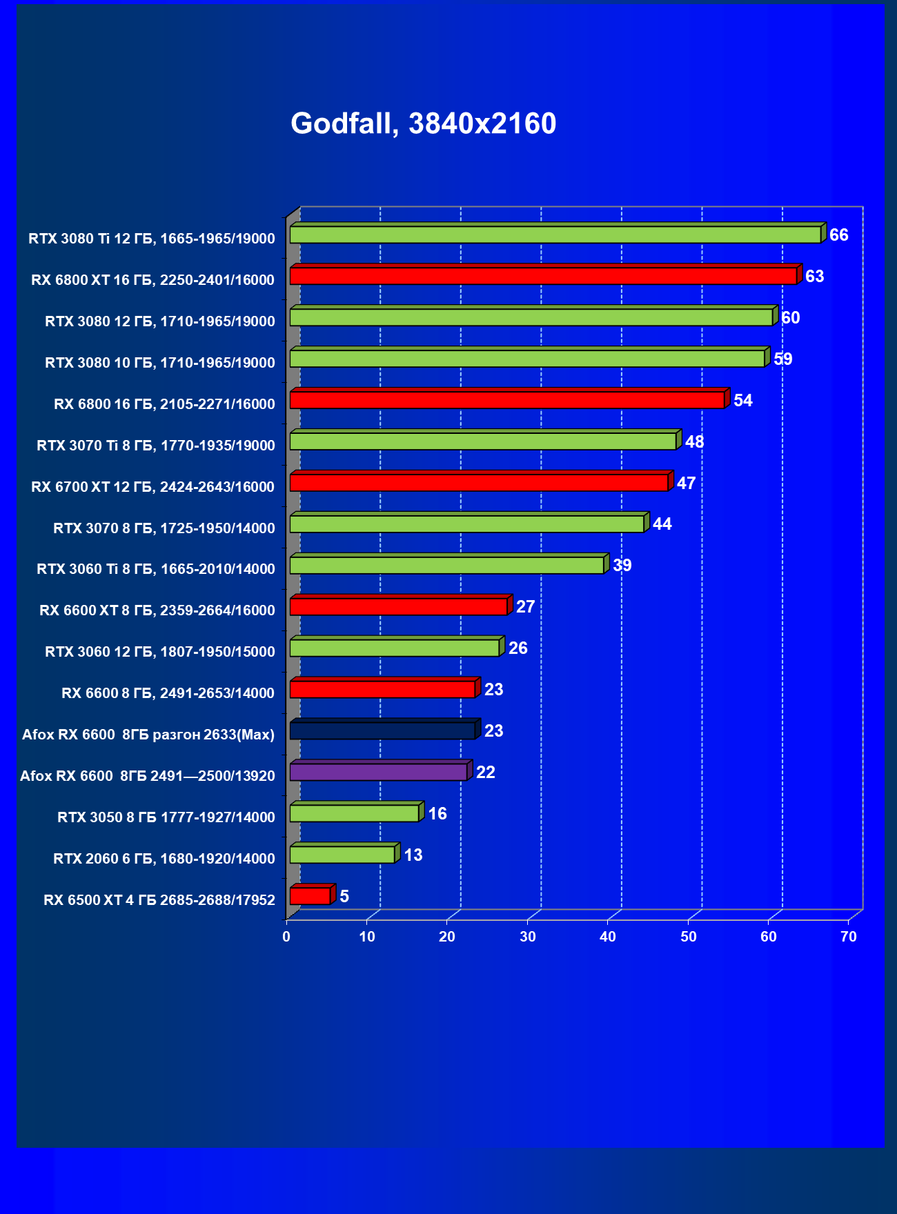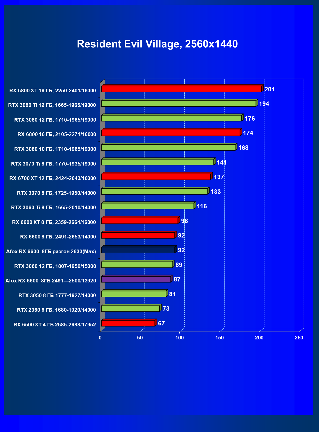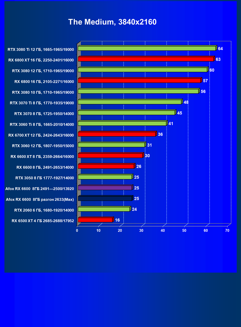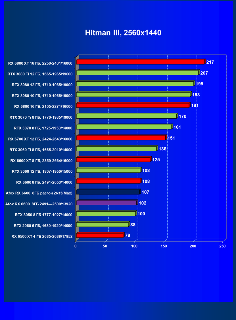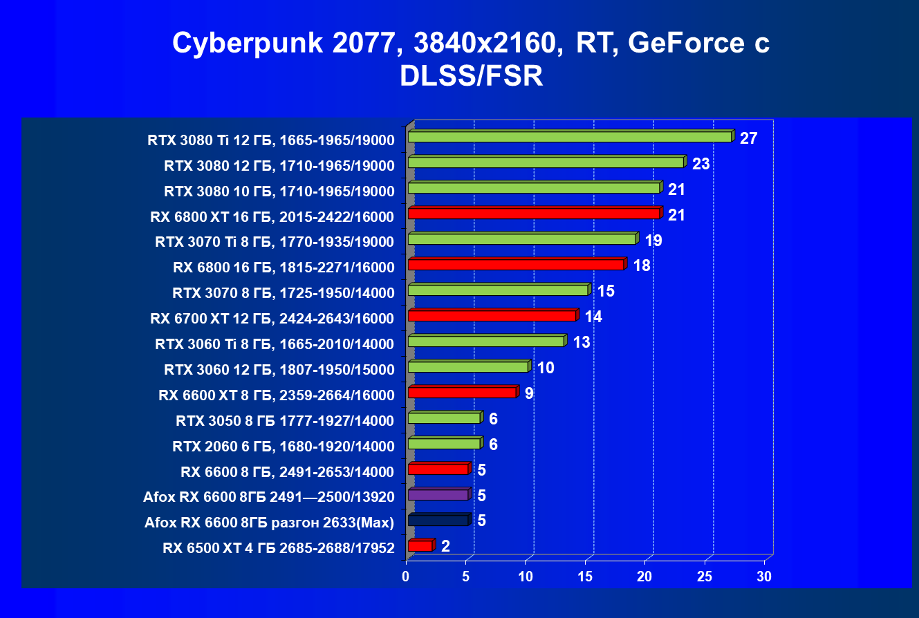 | 13 | Afox RX 6600 8 ГБ, разгон до 2633/14400 | 250 | 76 | 33 000 |
