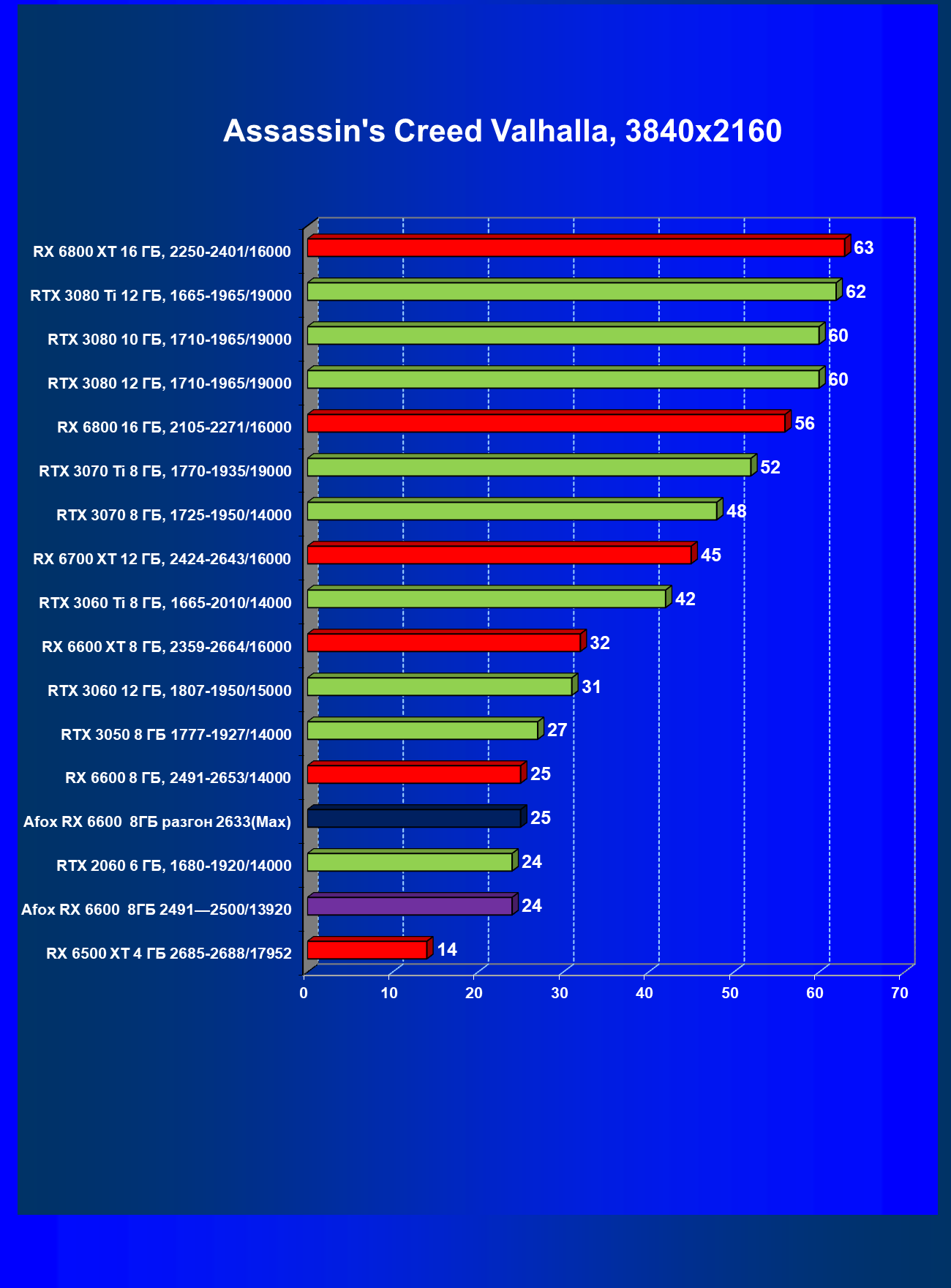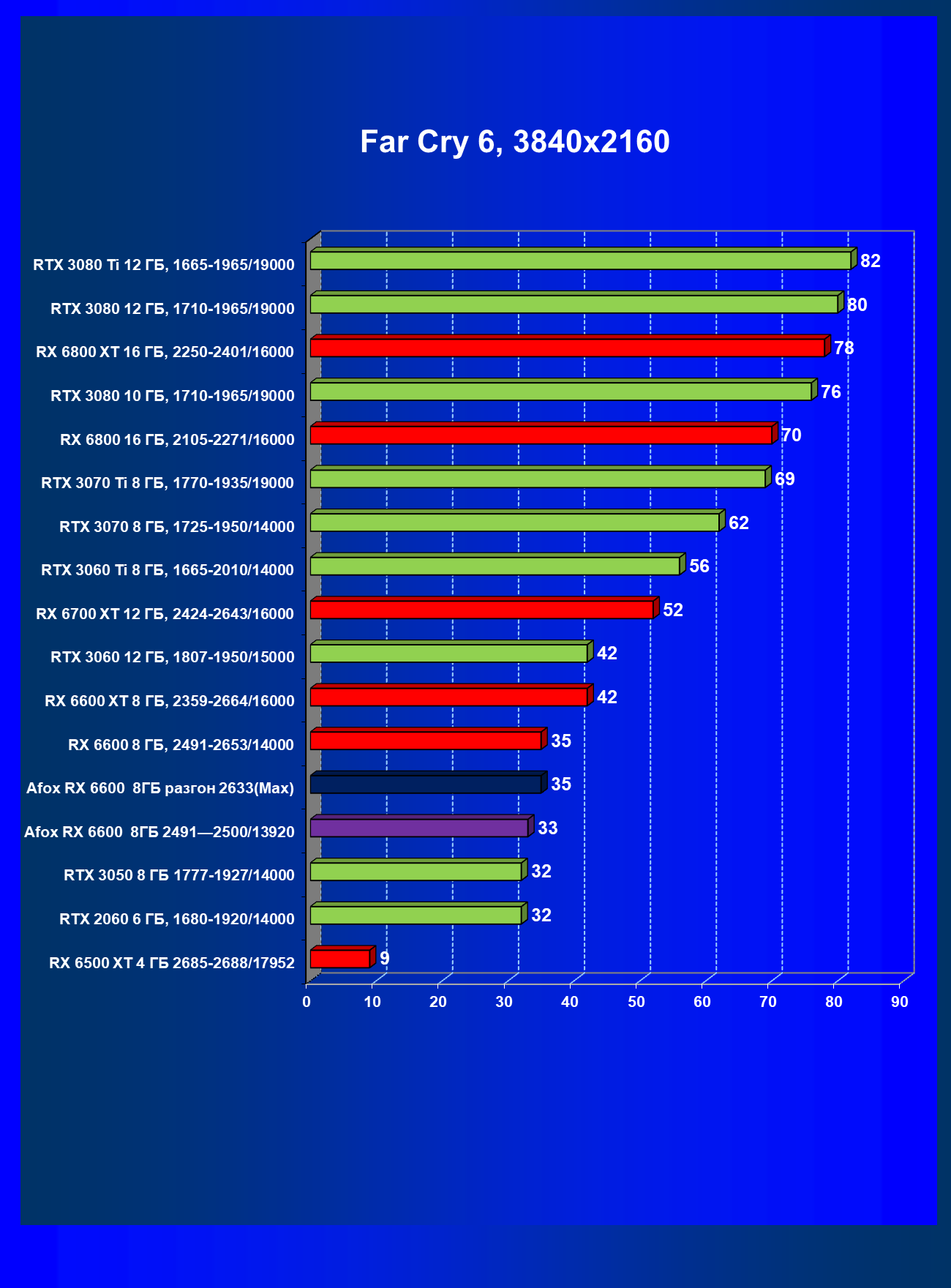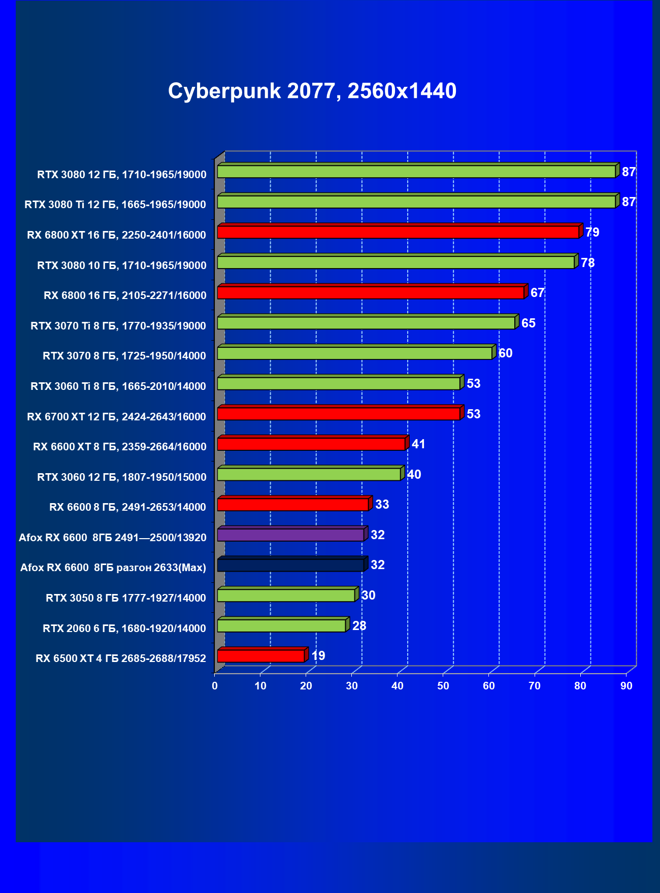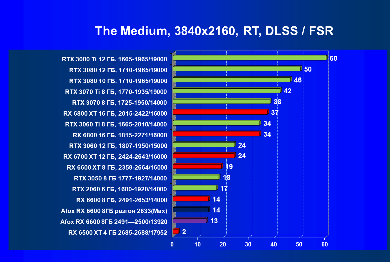 | 13 | Afox RX 6600 8 ГБ, разгон до 2633/14400 | 250 | 76 | 33 000 |