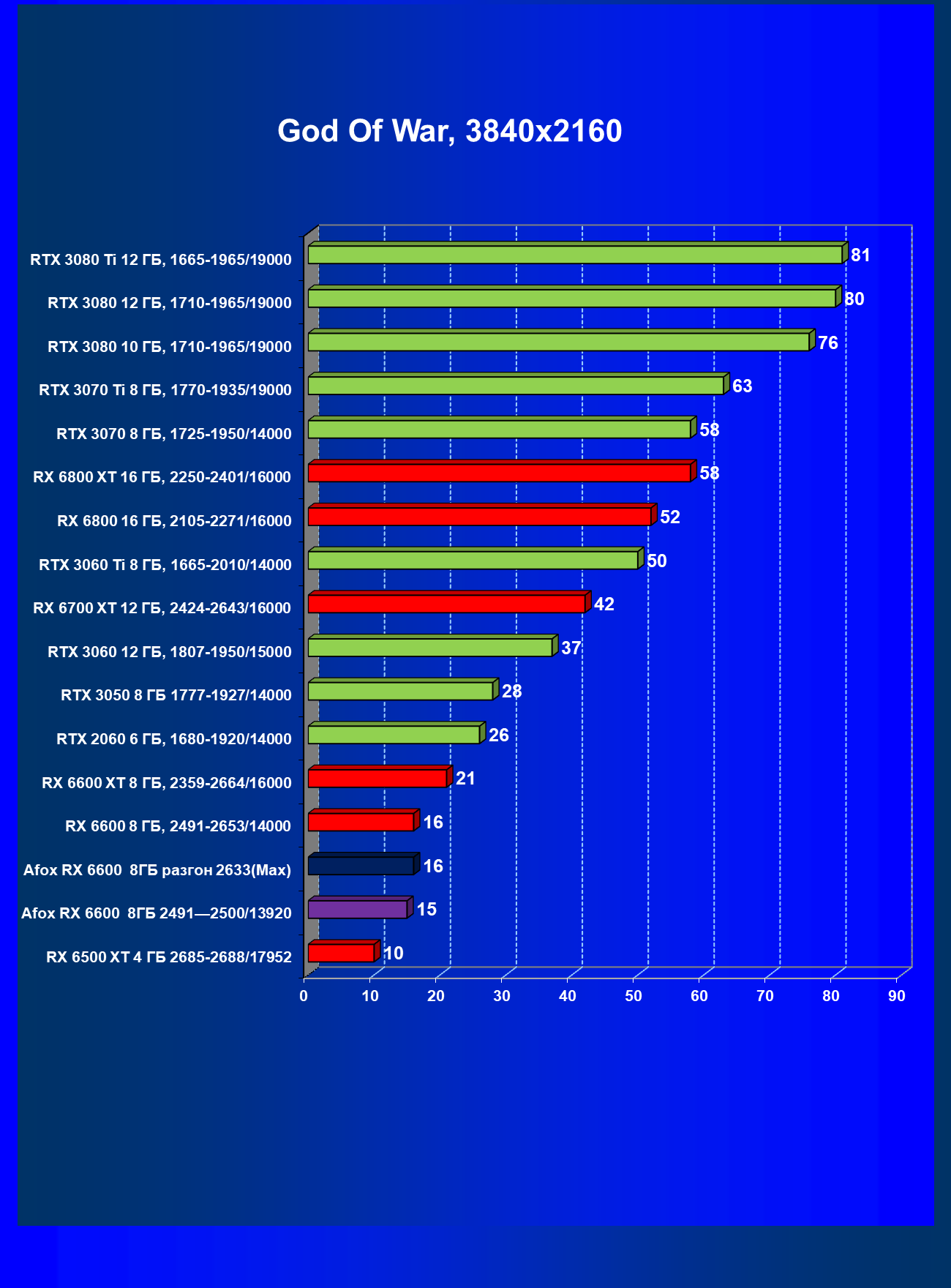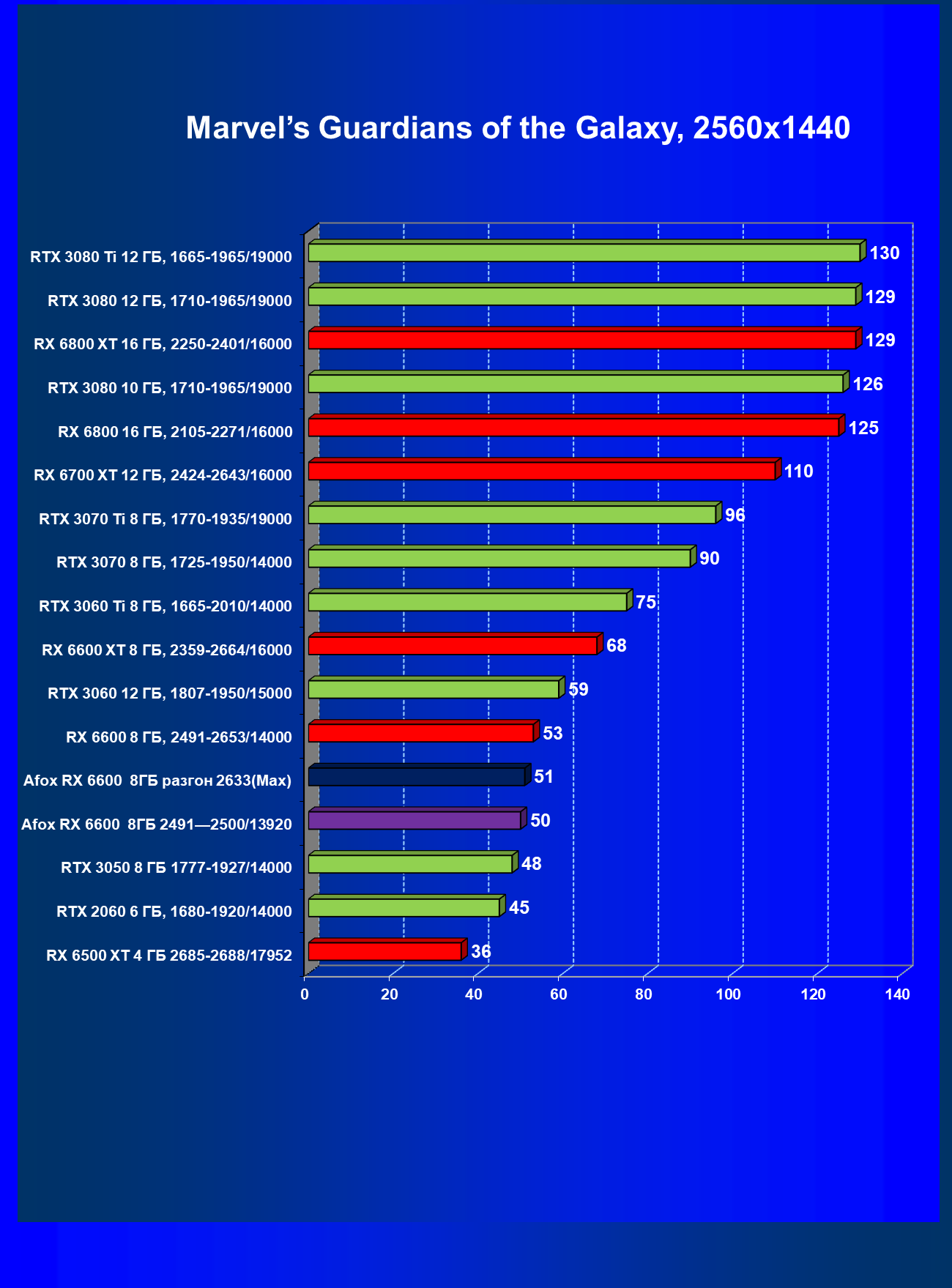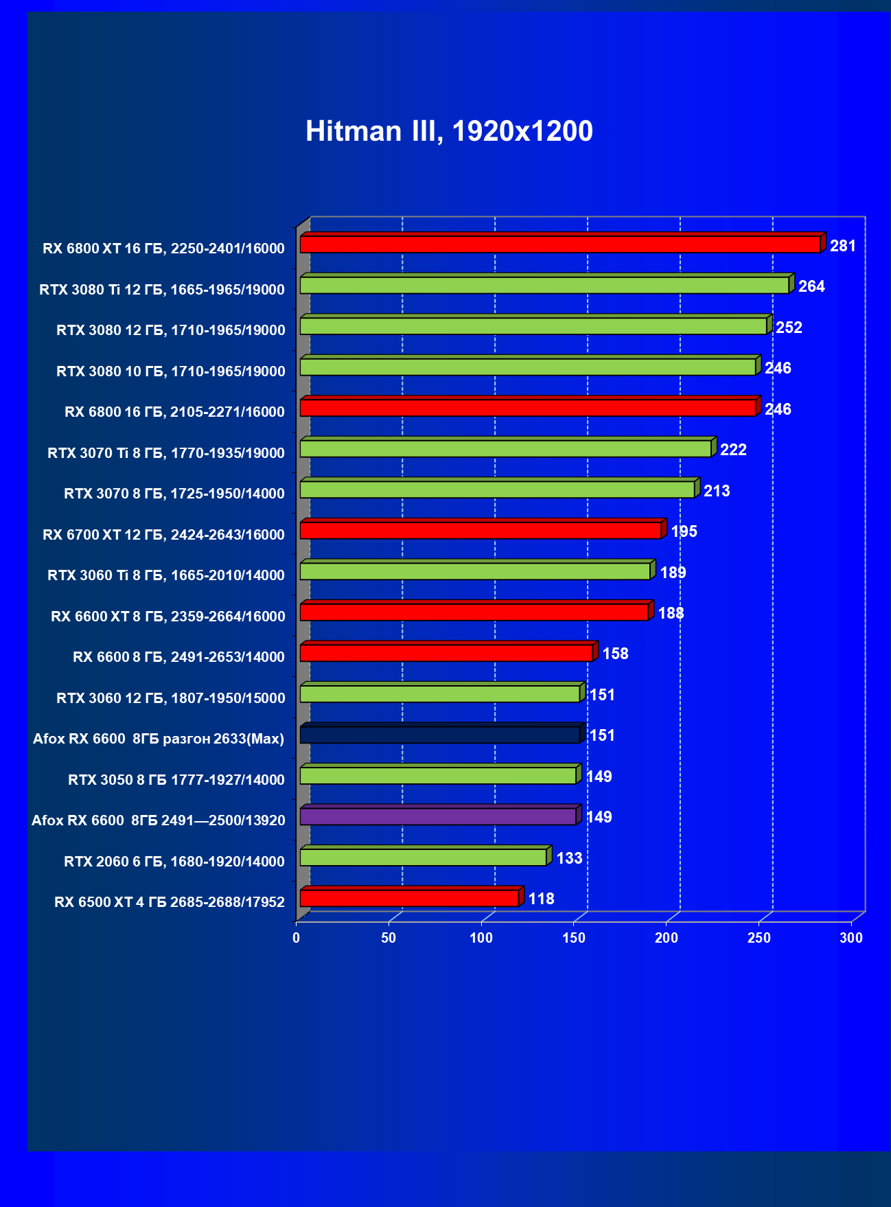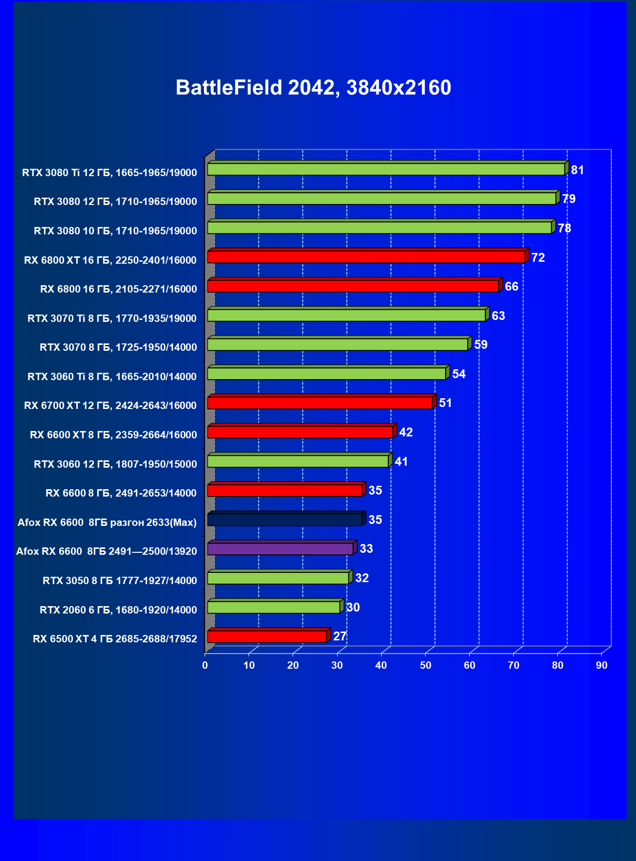 | 13 | Afox RX 6600 8 ГБ, разгон до 2633/14400 | 250 | 76 | 33 000 |