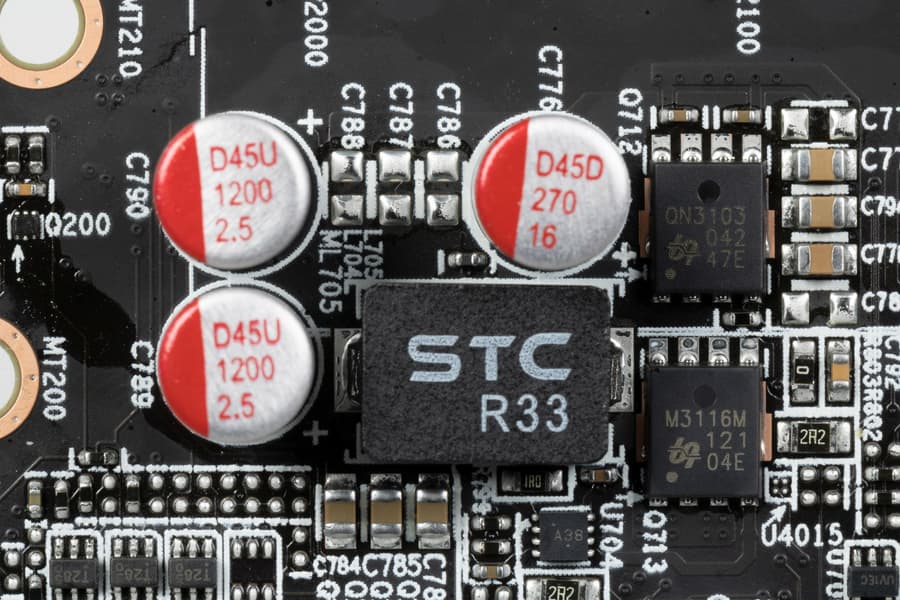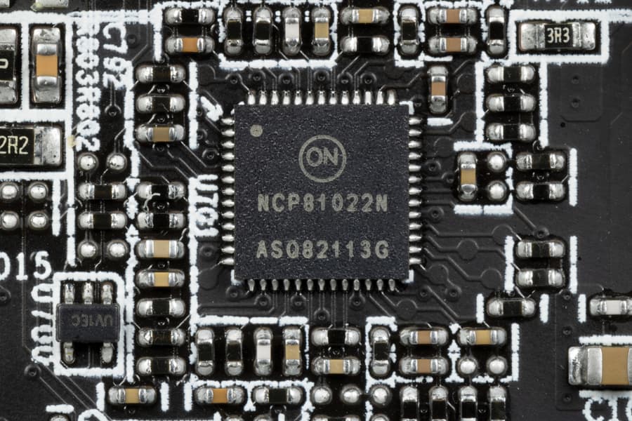 Питание подается через 8-контактный коннектор. В преобразователе питания ядра используются транзисторные сборки Alpha&Omega Semiconductor — AOZ5331, каждая из которых рассчитана максимум на 45 А.