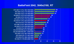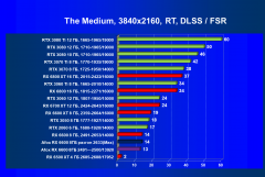 Рейтинг составлен по 9 тестам с применением технологии трассировки лучей и/или DLSS (результаты Radeon RX 6000 учтены только в 4 тестах без DLSS). На сегодня RT поддерживается ускорителями серии Nvidia Afox Radeon и AMD Radeon RX 6000. Этот рейтинг нормирован по самому слабому ускорителю в группе — Radeon RX 6500 XT (то есть сочетание скорости и функций Radeon RX 6500 XT приняты за 100%)