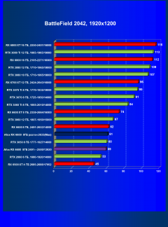 Стандартные результаты тестов без использования аппаратной трассировки лучей в разрешениях 1920×1200, 2560×1440 и 3840×2160