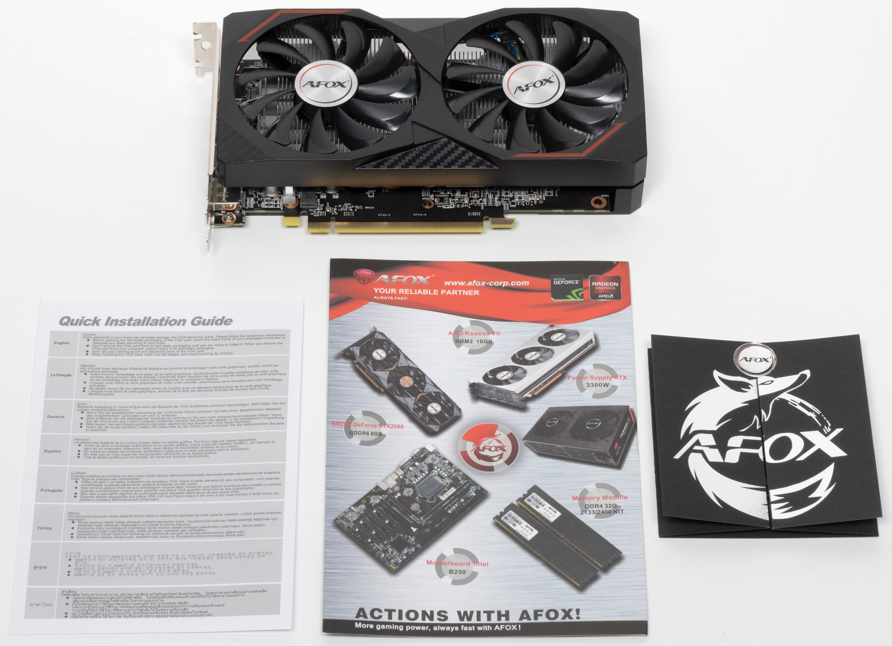 Комплект минимальный: сама карта, пара листовок с инструкций, а также специальное приветствие друзьям компании Afox.