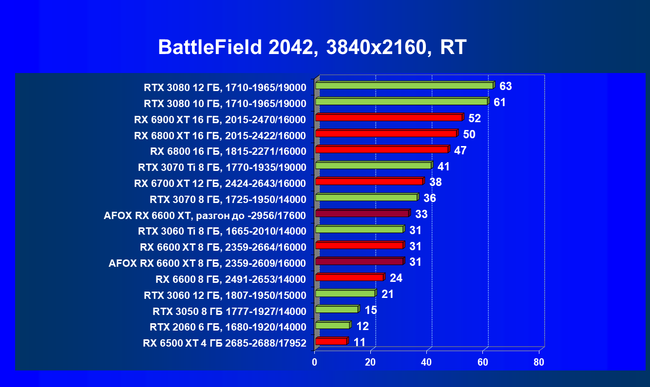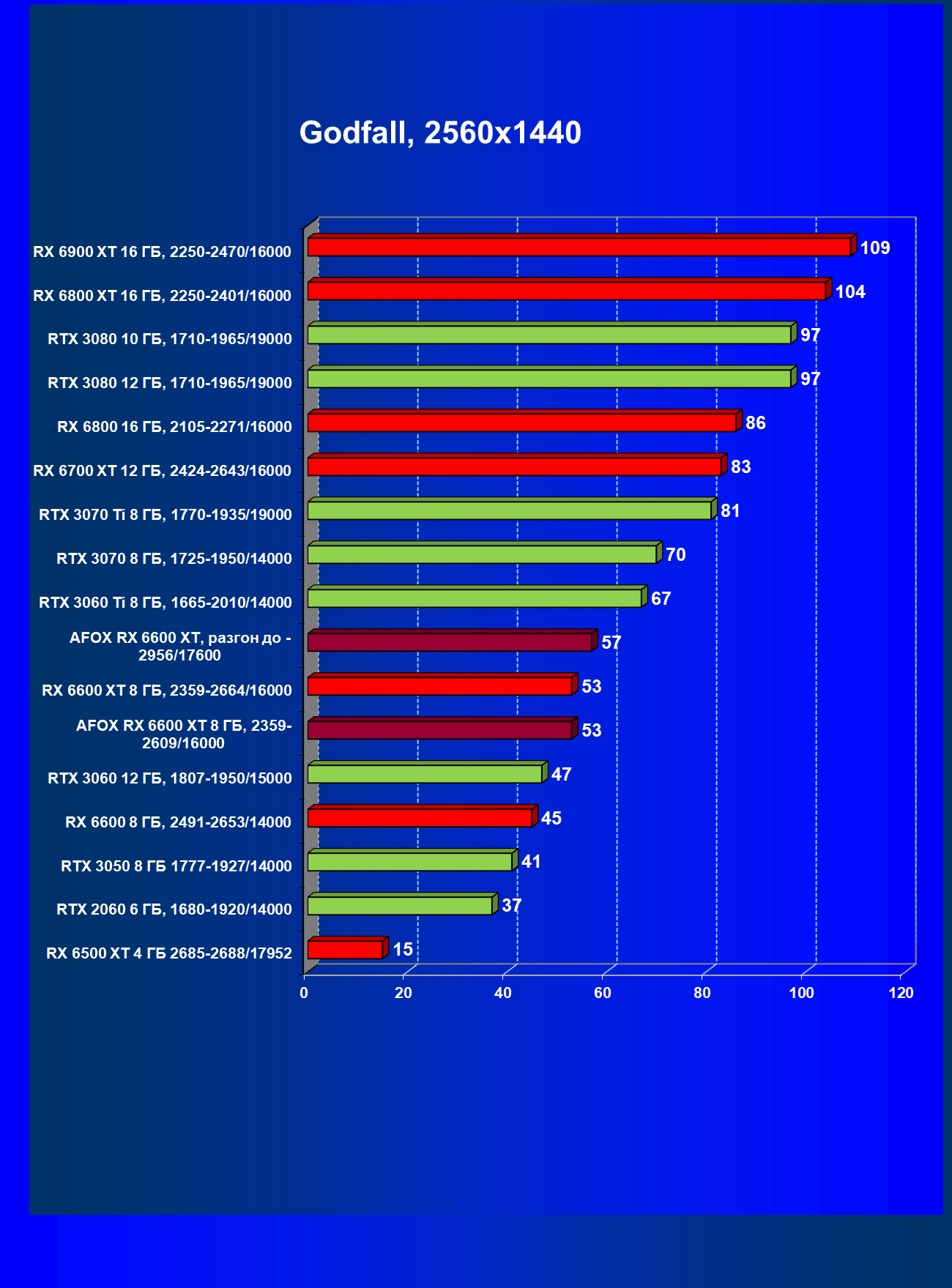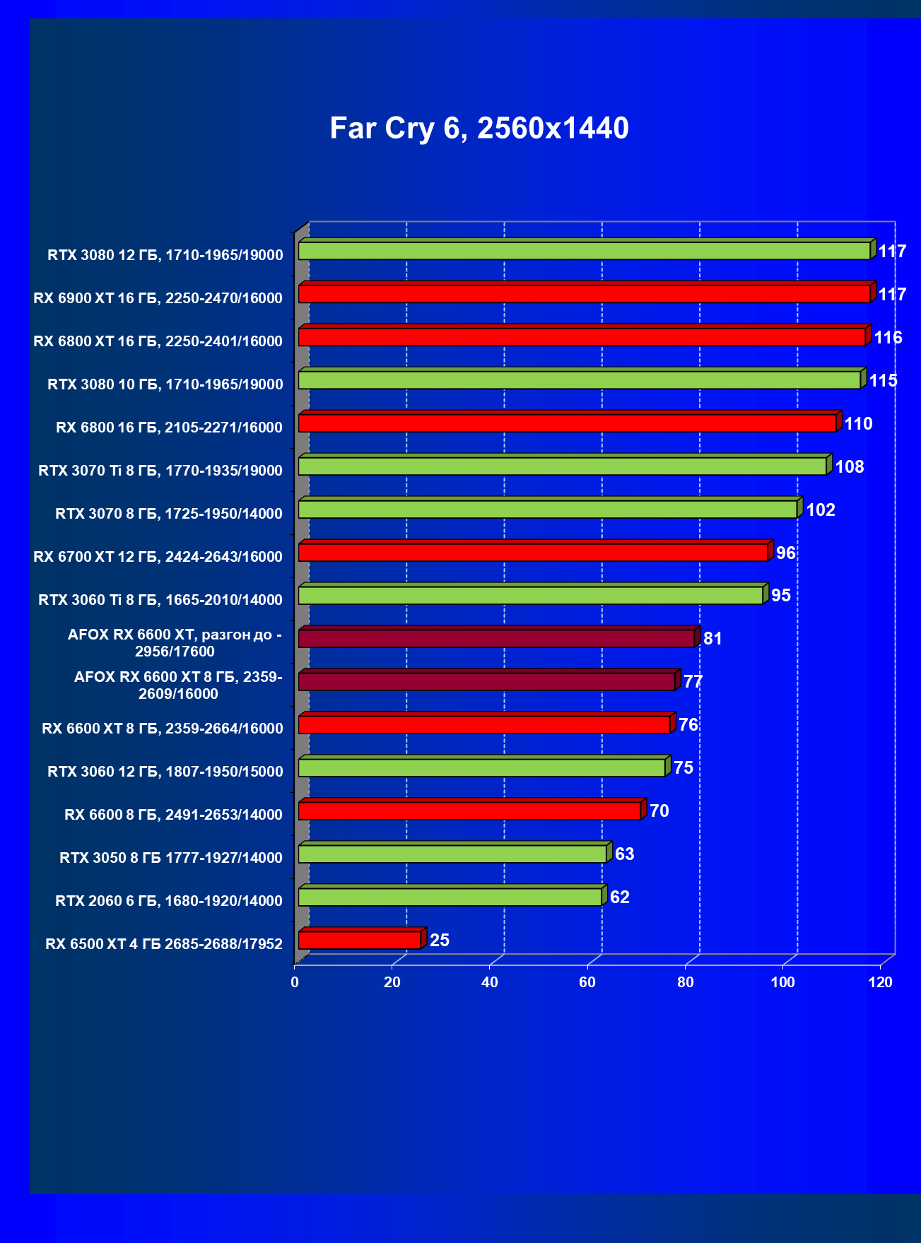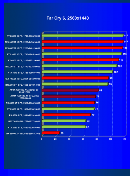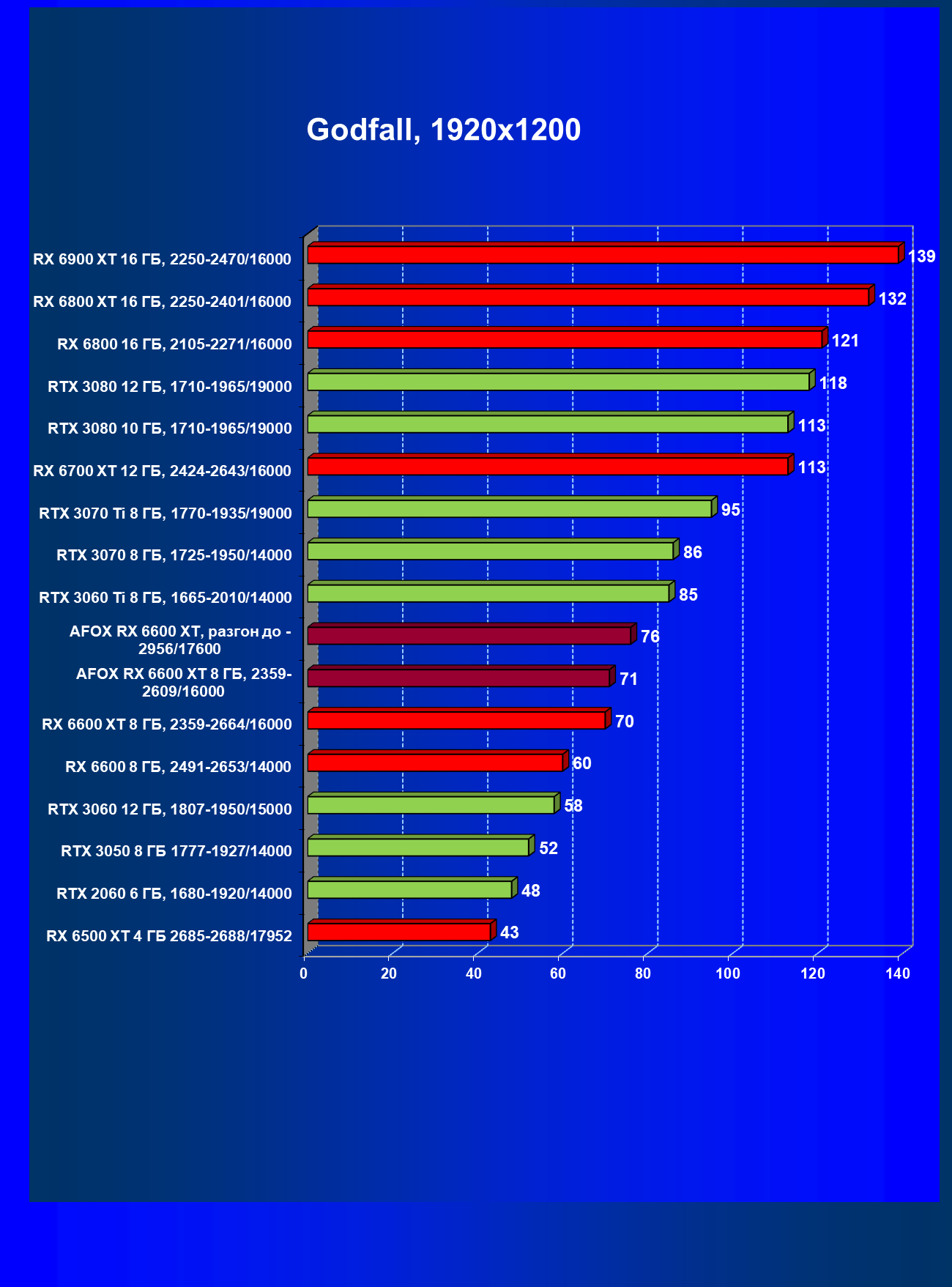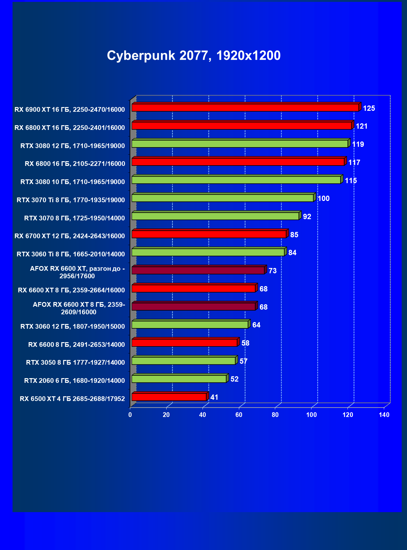 | 07 | Afox RX 6600 XT 8 ГБ, 2359—2609/16000 | 74 | 310 | 42 000 |