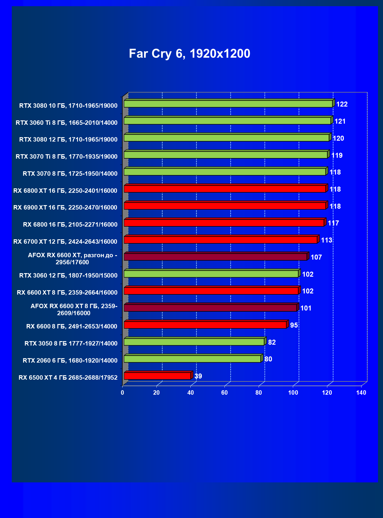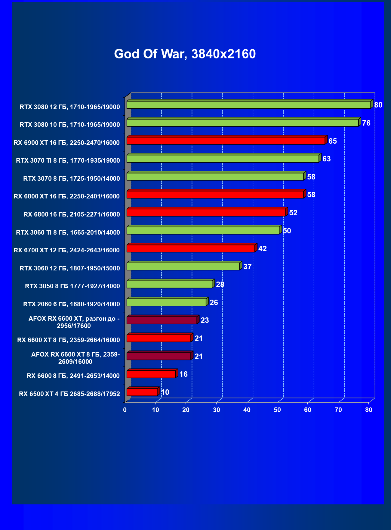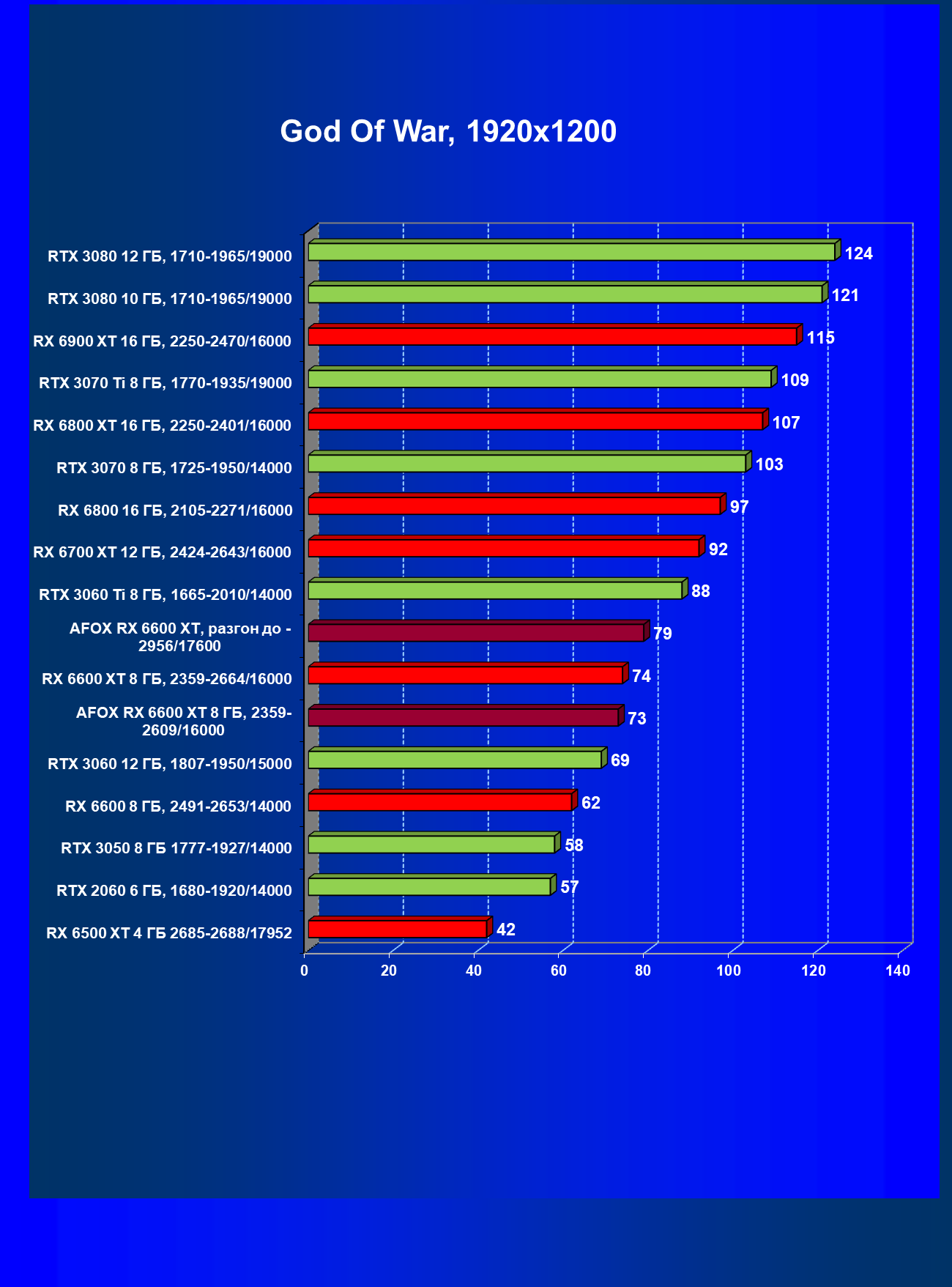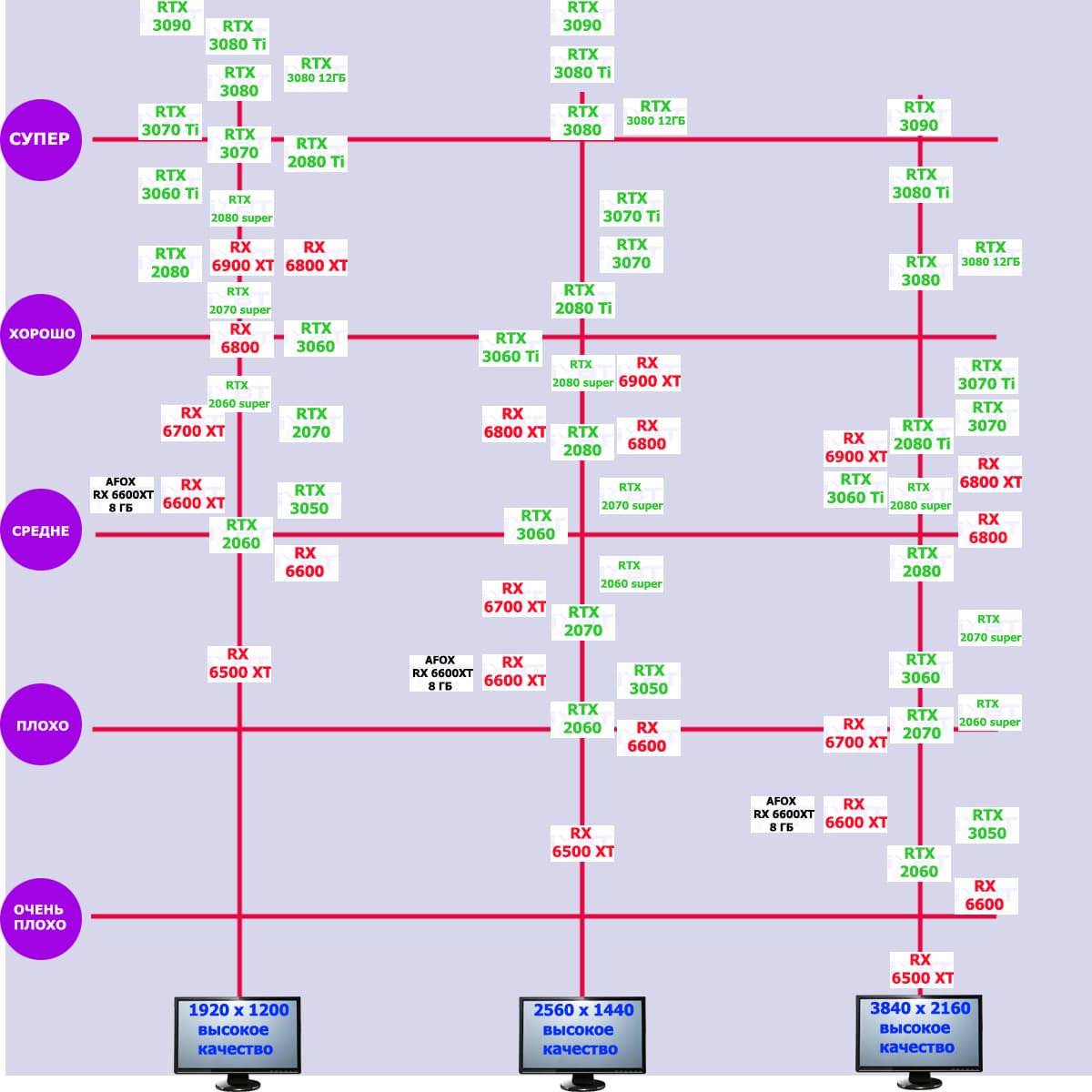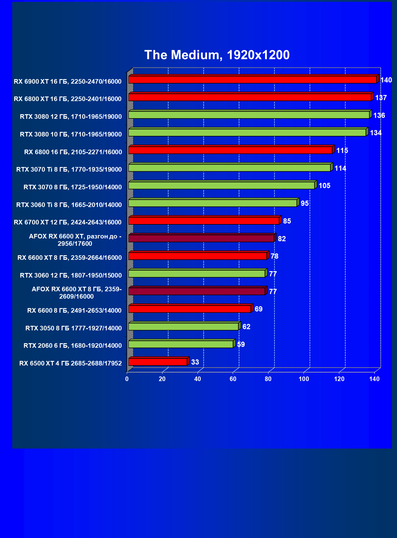 | 07 | Afox RX 6600 XT 8 ГБ, 2359—2609/16000 | 74 | 310 | 42 000 |