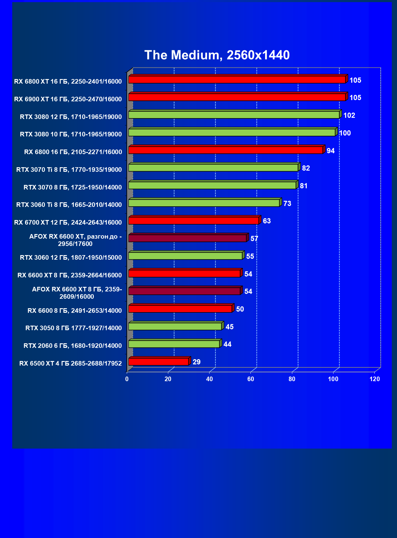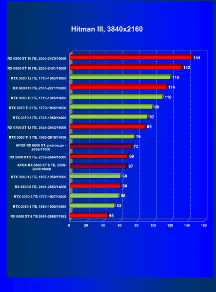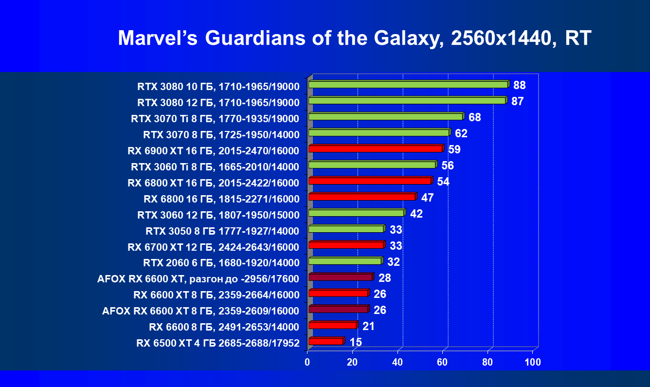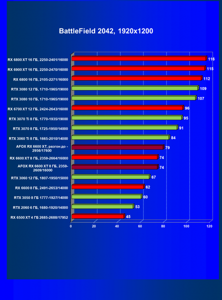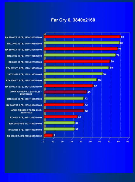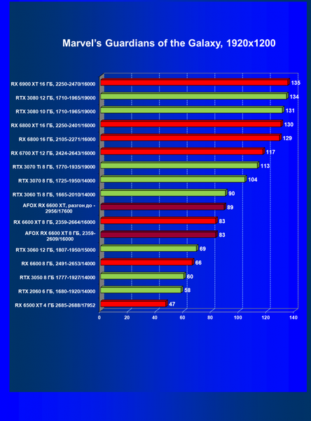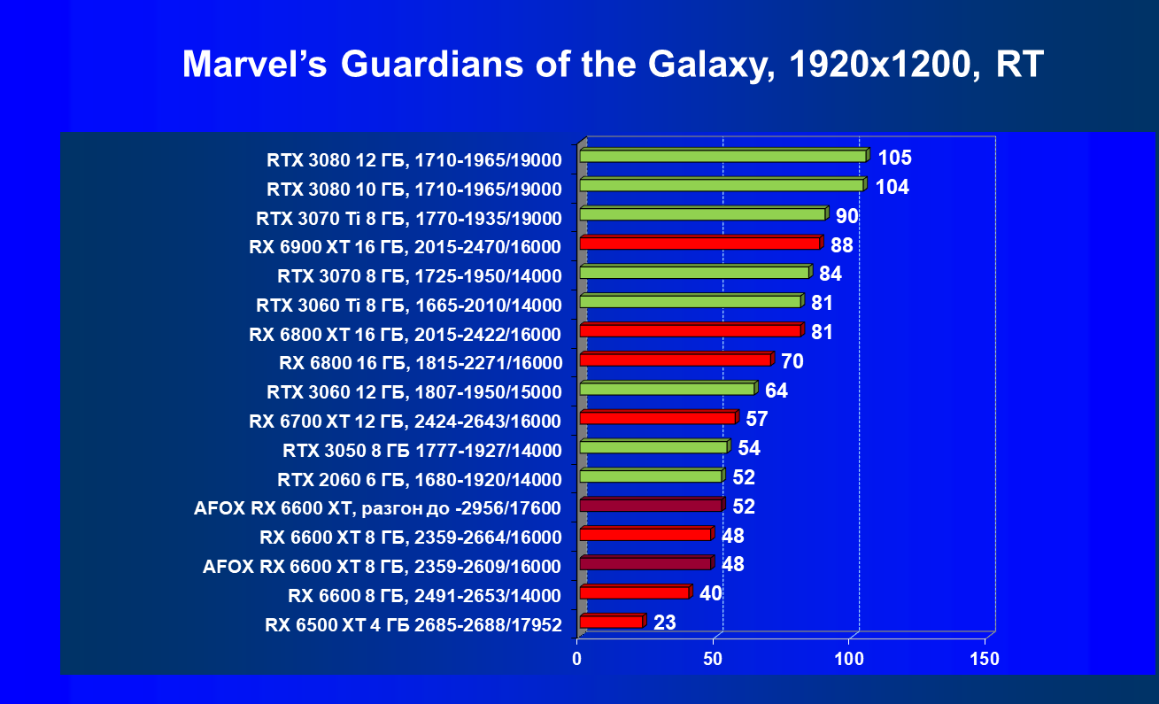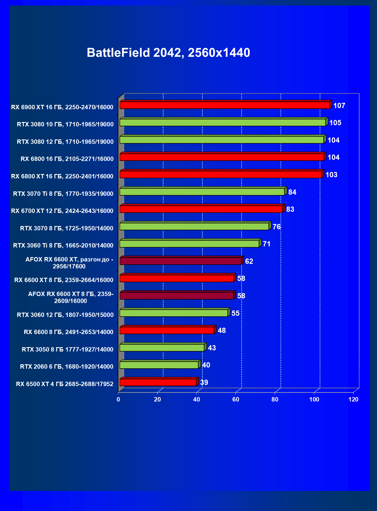 | 07 | Afox RX 6600 XT 8 ГБ, 2359—2609/16000 | 74 | 310 | 42 000 |