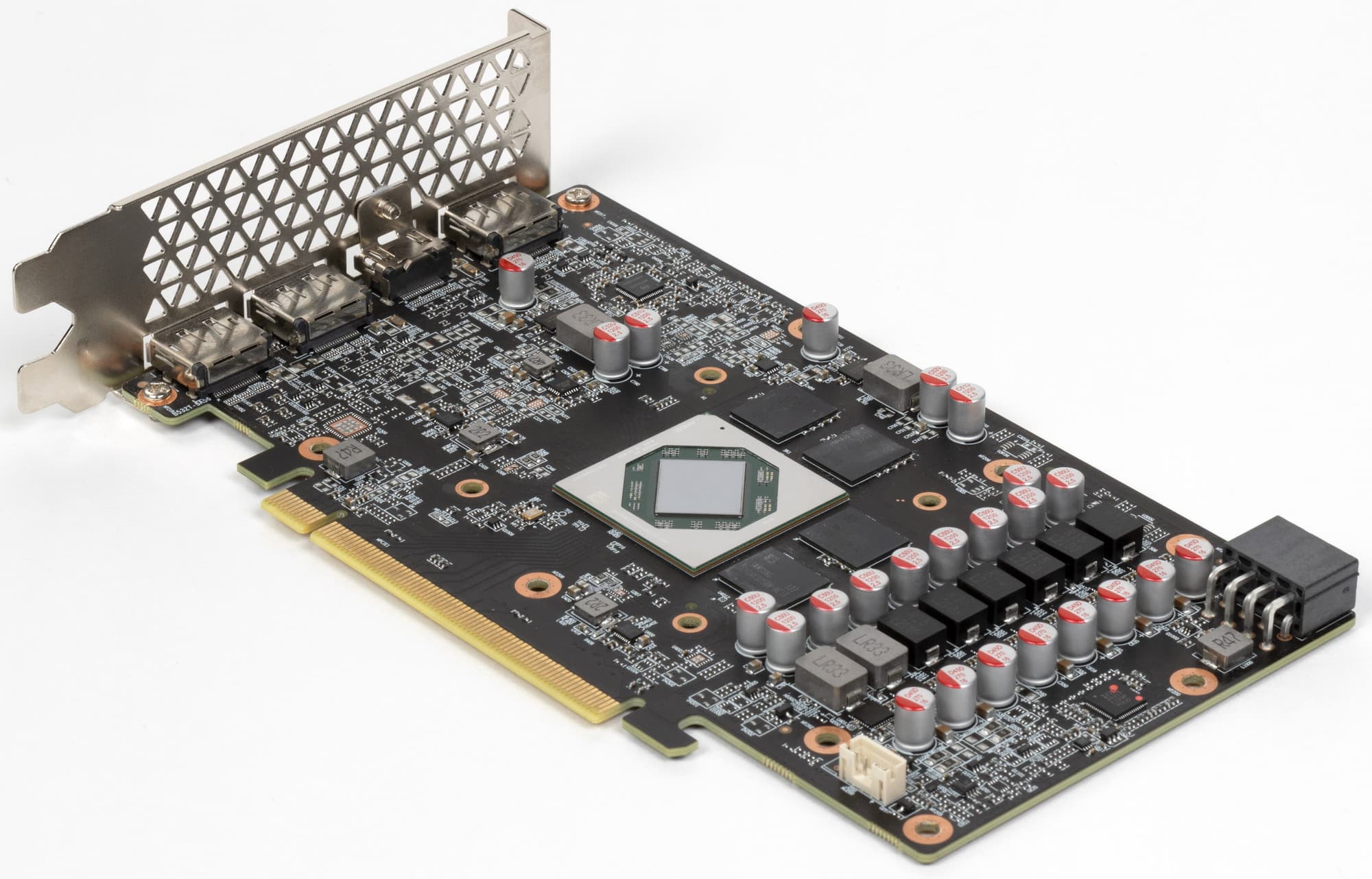 Контроллера, отвечающего за мониторинг карты (слежение за напряжением и температурой) обнаружено не было, полагаем, что инженеры довольствовались тем набором сенсоров, что имеется внутри самого GPU.