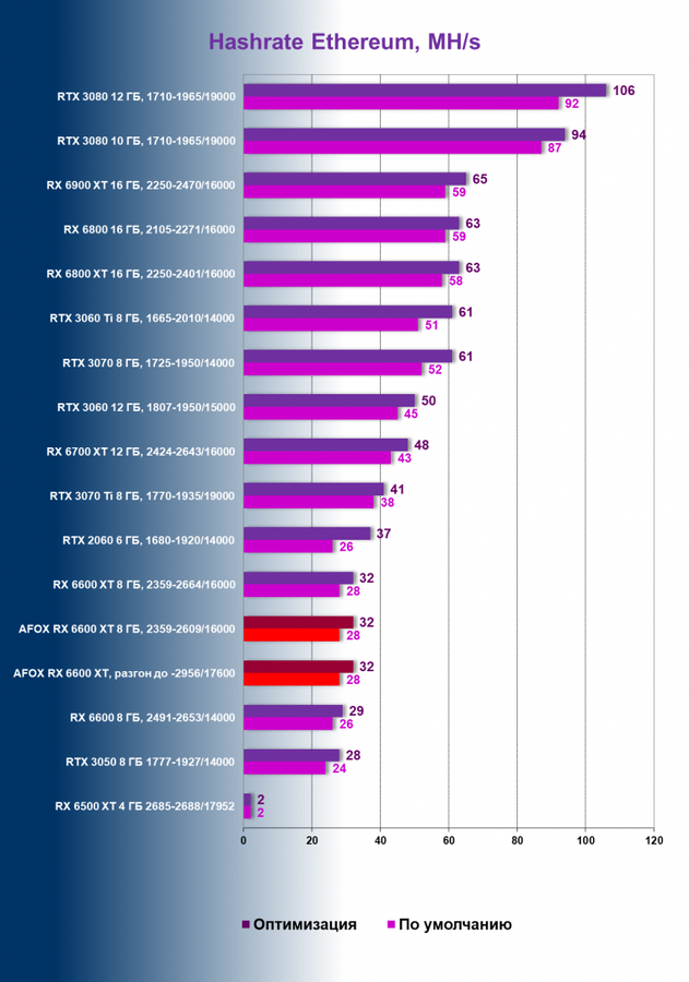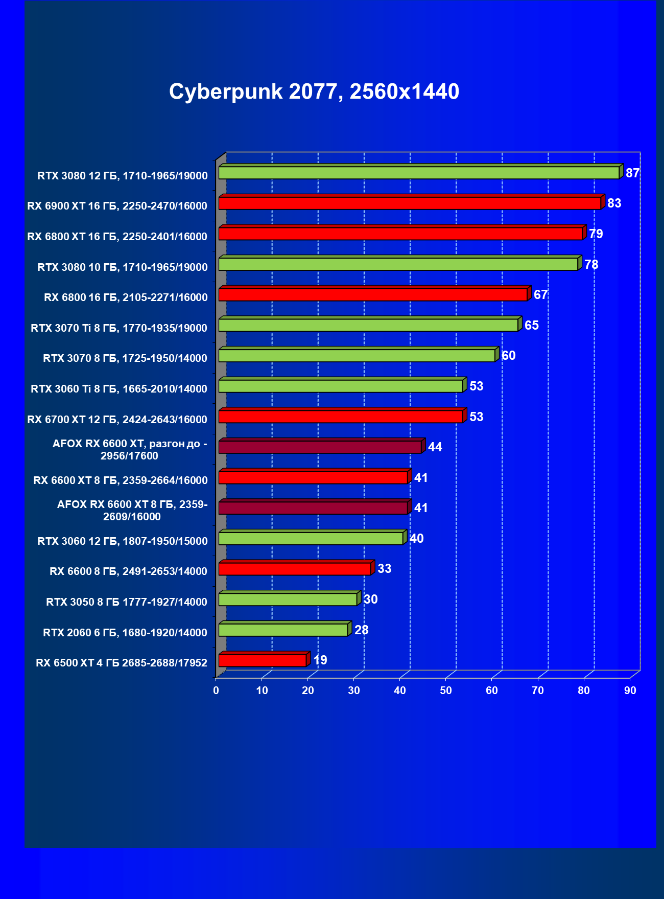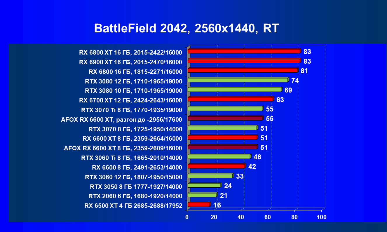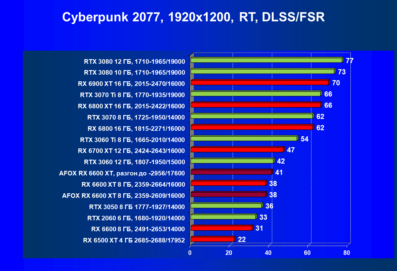 | 02 | Afox RX 6600 XT, разгон до 2956/17600 | 79 | 330 | 42 000 |