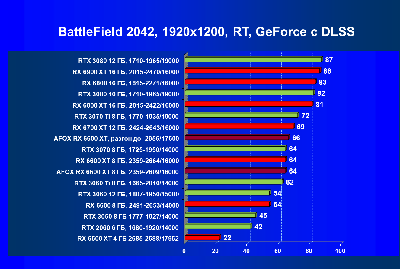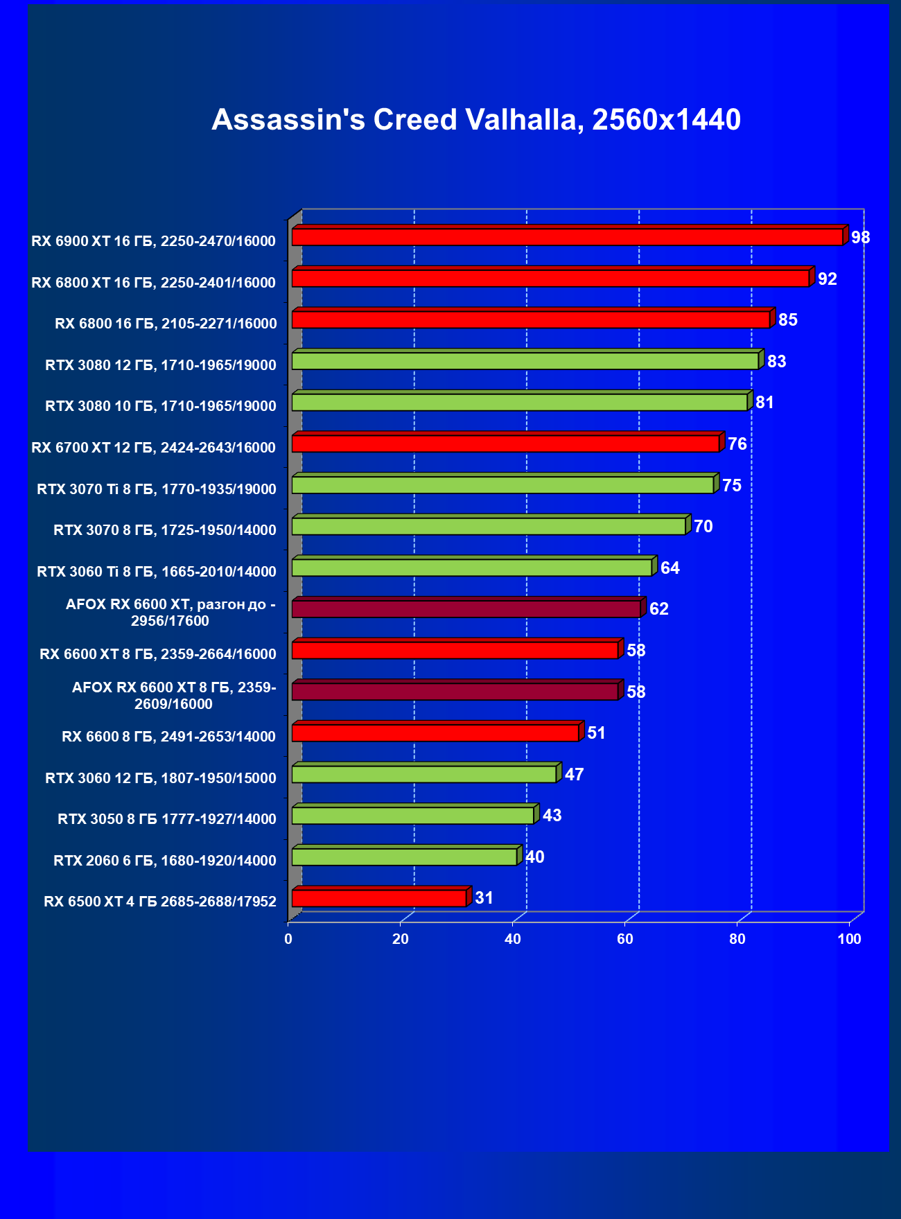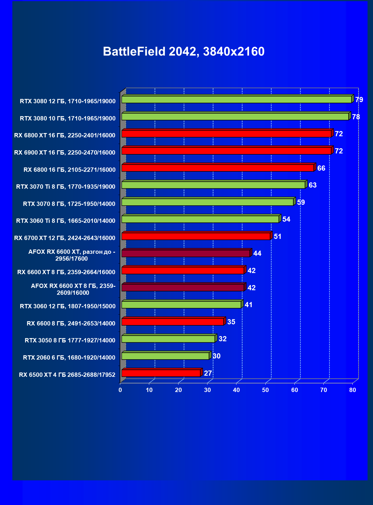 | 02 | Afox RX 6600 XT, разгон до 2956/17600 | 79 | 330 | 42 000 |