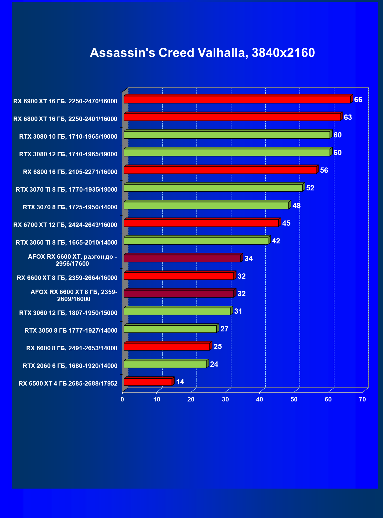 | 14 | RX 6600 8 ГБ, 2491—2653/14000 | 180 | 58 | 31 000 |