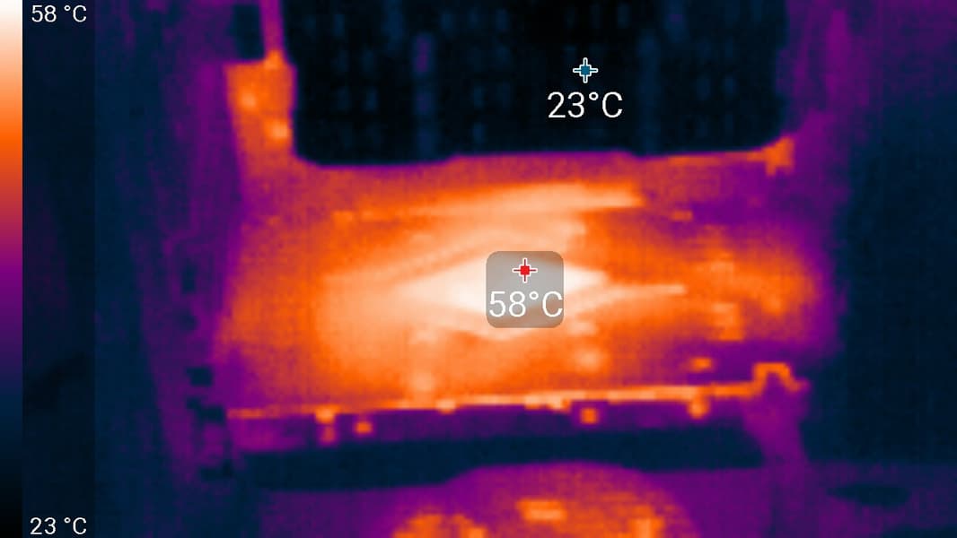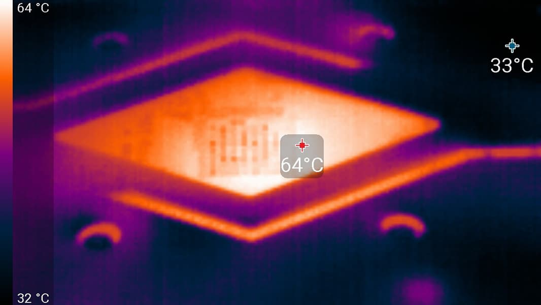 В простое температура была не выше 44 °C, вентиляторы не работали, уровень шума был равен фоновому — 18 дБА.