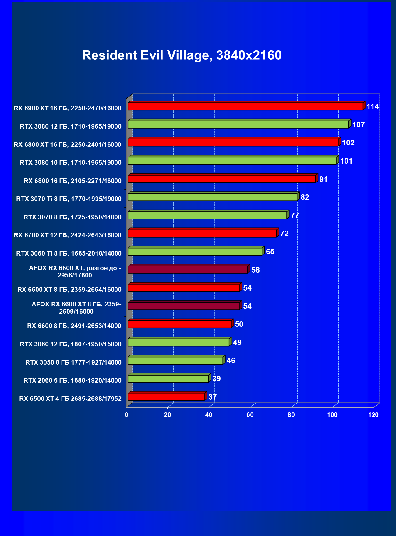 | 12 | RX 6600 XT 8 ГБ, 2359—2664/16000 | 210 | 46 | 46 000 |