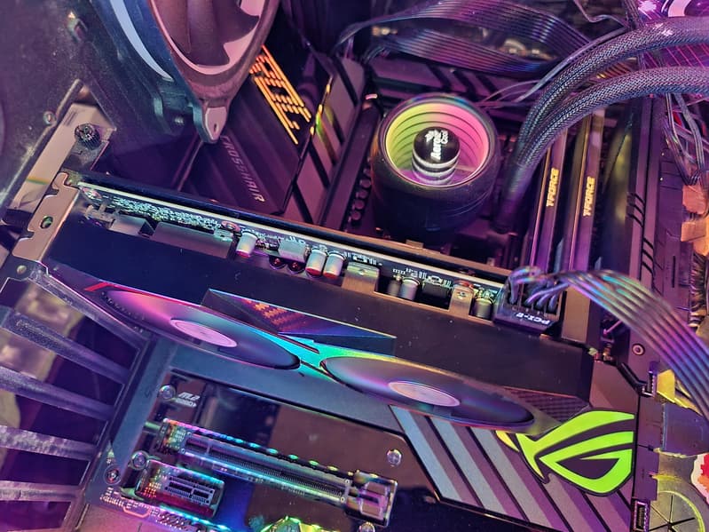 Еще у карты Afox надо отметить систему охлаждения, которая здесь справляется со своей работой без явного запаса и довольно заметно шумит. Зато видеокарта получилась компактная, она занимает 2 слота в системном блоке и имеет 4 видеовыхода (3 DP 1.4 и 1 HDMI 2.1).