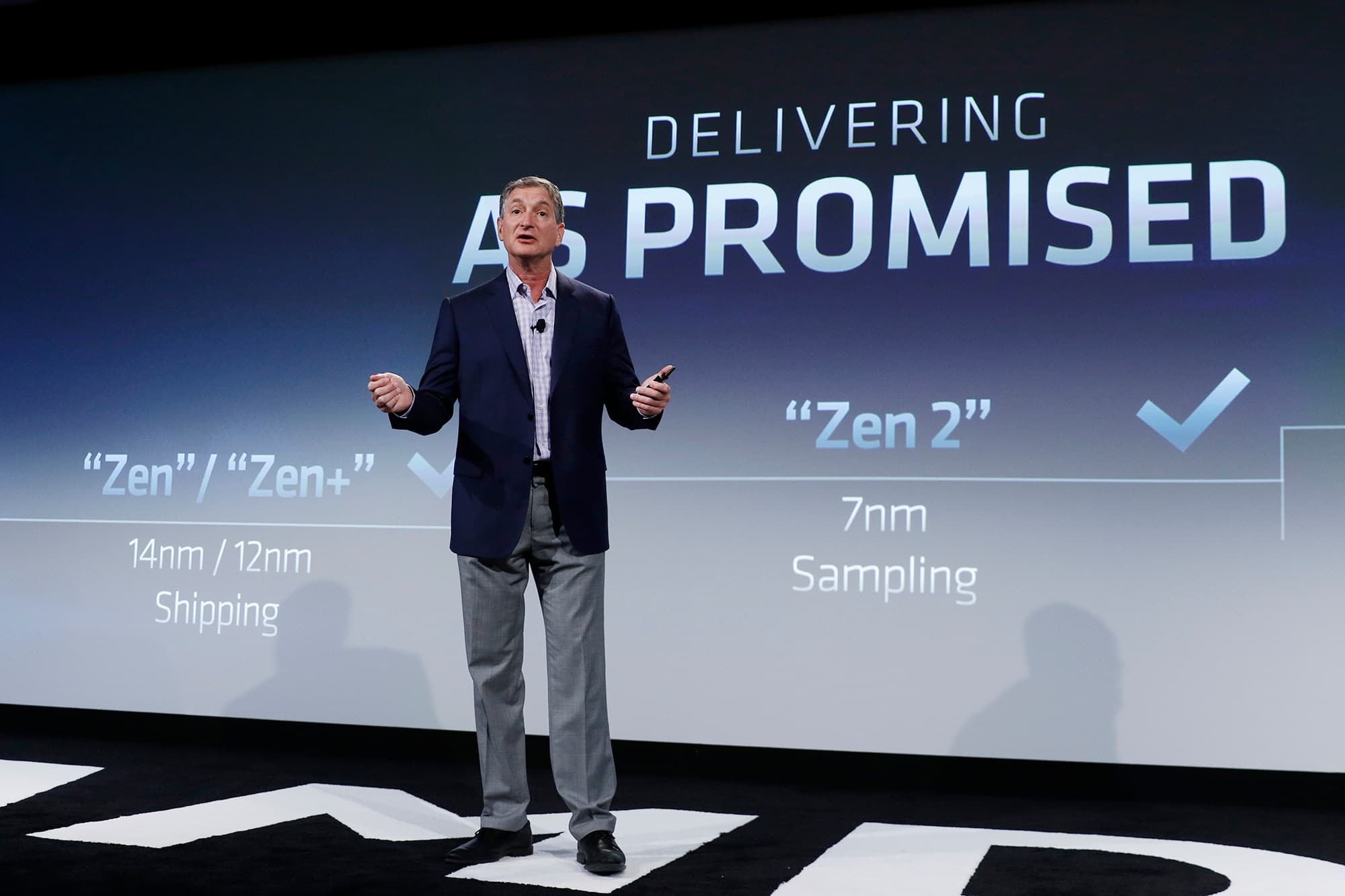 На своем мероприятии, посвященном высокопроизводительным системам и дата-центрам, компания AMD впервые раскрыла некоторые интересные подробности о своей грядущей высокопроизводительной x86-совместимой архитектуре для универсальных процессоров — Zen 2. Самое очевидное его преимущество состоит в том, что этот многоядерный процессор будет выпускаться по самому совершенному на данный момент техпроцессу 7 нм.